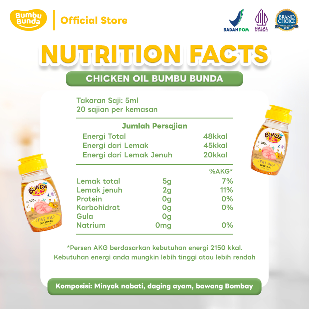 Bumbu Bunda Fat Oil 100ml – Minyak MPASI | Lemak Daging Asli Chicken/Beef/Salmon BB Booster | No MSG