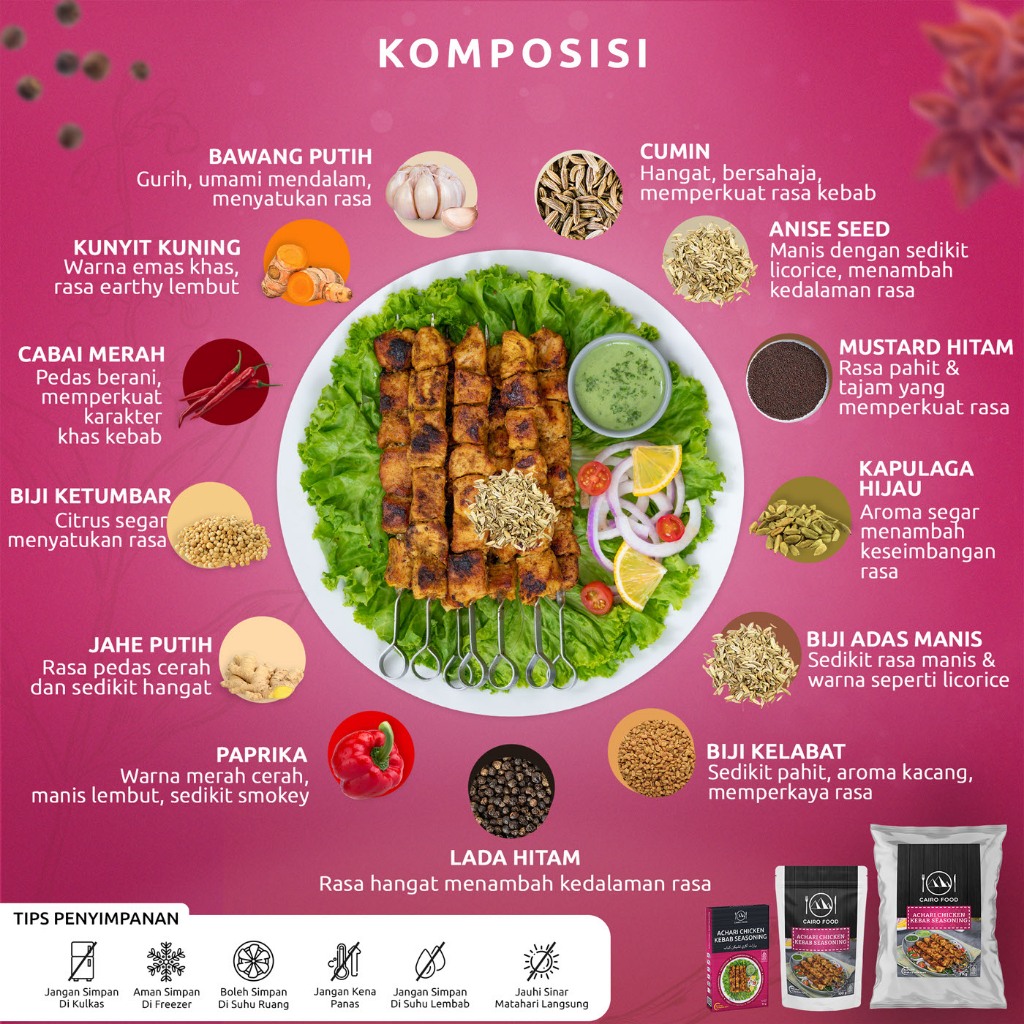 Bumbu Kebab Ayam Achari Sehat – Tanpa MSG, 100% Rempah Murni | Cairo Food - 50gram