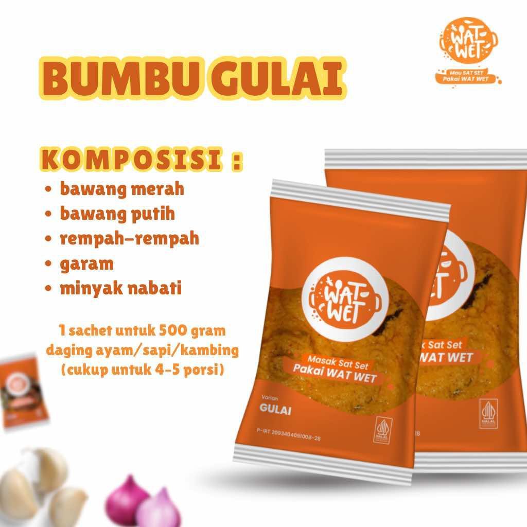 WAT WET - Bumbu Masak Instan Gulai 40gr | Gulai Ayam Padang, Gulai Kambing Aceh, Gulai Ikan Patin, Kikil, Tunjang, Nangka Muda, Kepala Ikan, Daging Sapi, Daun Singkong, Telur Balado | 100% Rempah Asli, Halal, Praktis & Lezat