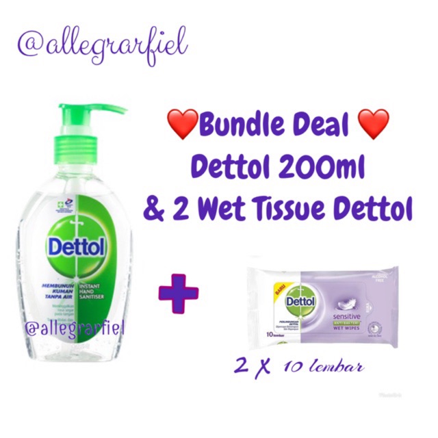Bundle Dettol Hand Sanitizer 200ml dan 2 Tissue Basah Dettol