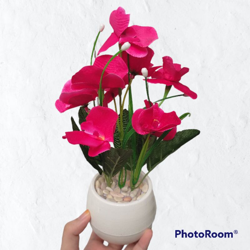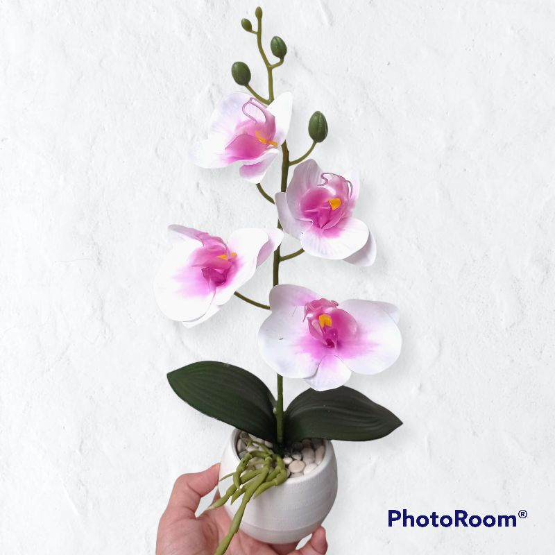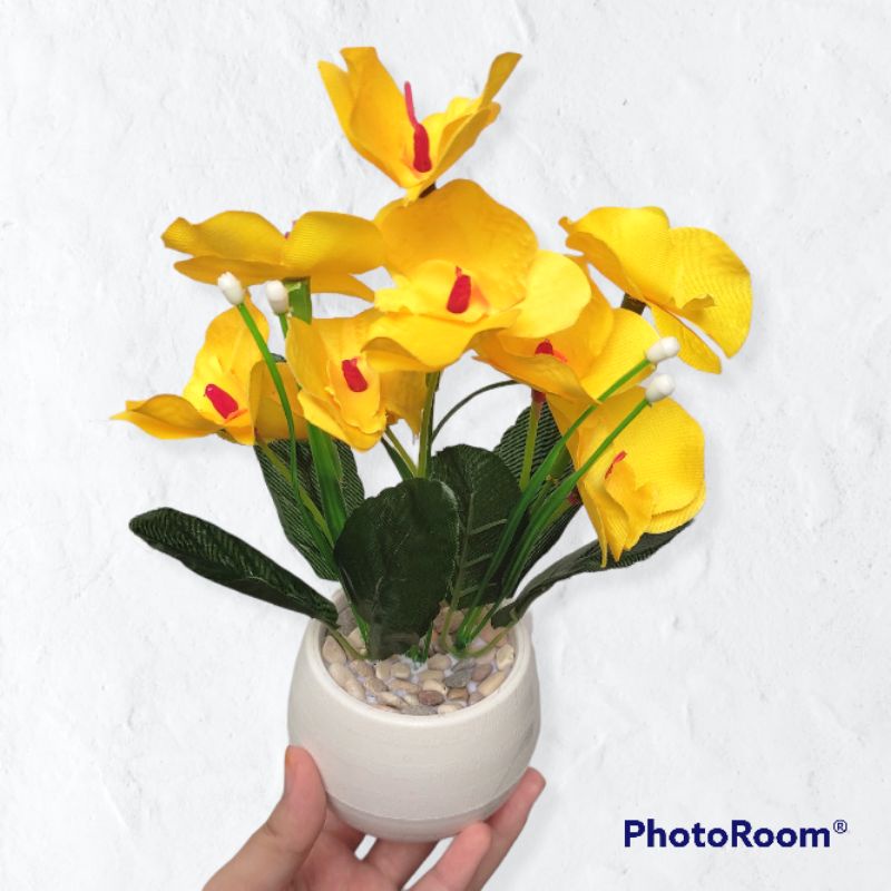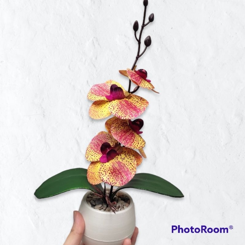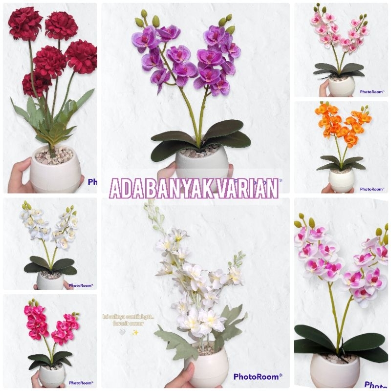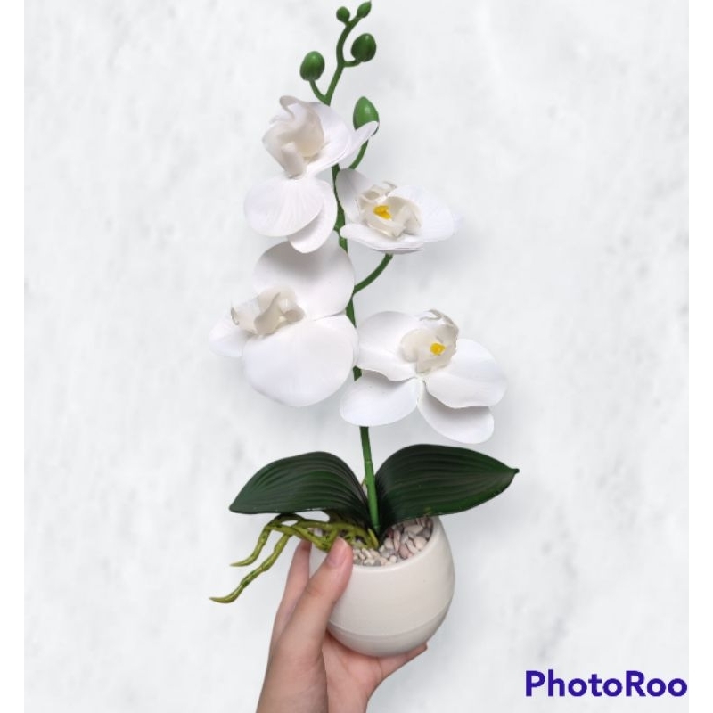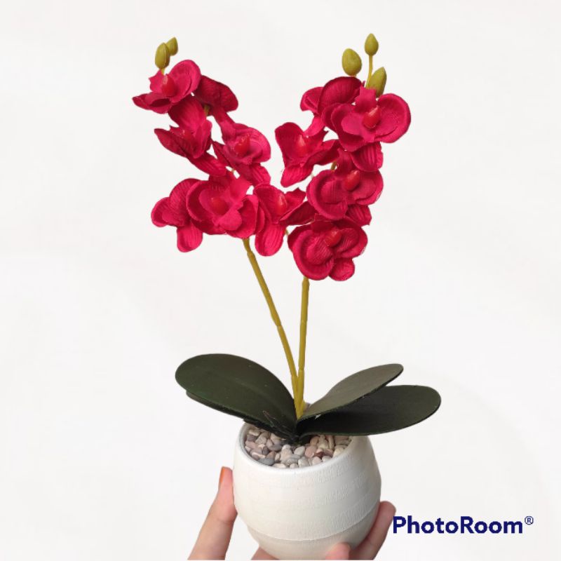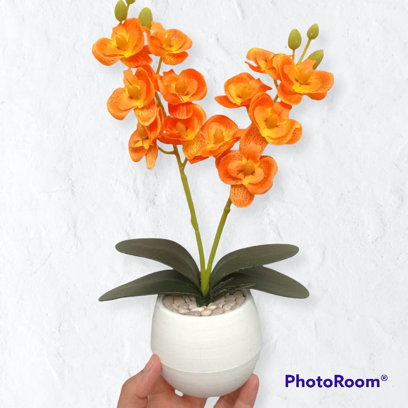 Bunga Anggrek Bulan Mini pot bola tanaman palsu kaktus palsu anggrek imitasi anggrek kain bukan lateks