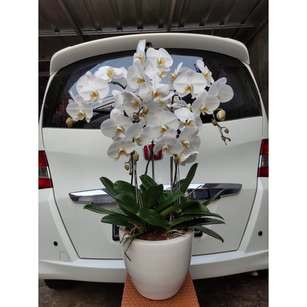 Bunga Anggrek Bulan Putih (5 Tangkain & Pot)