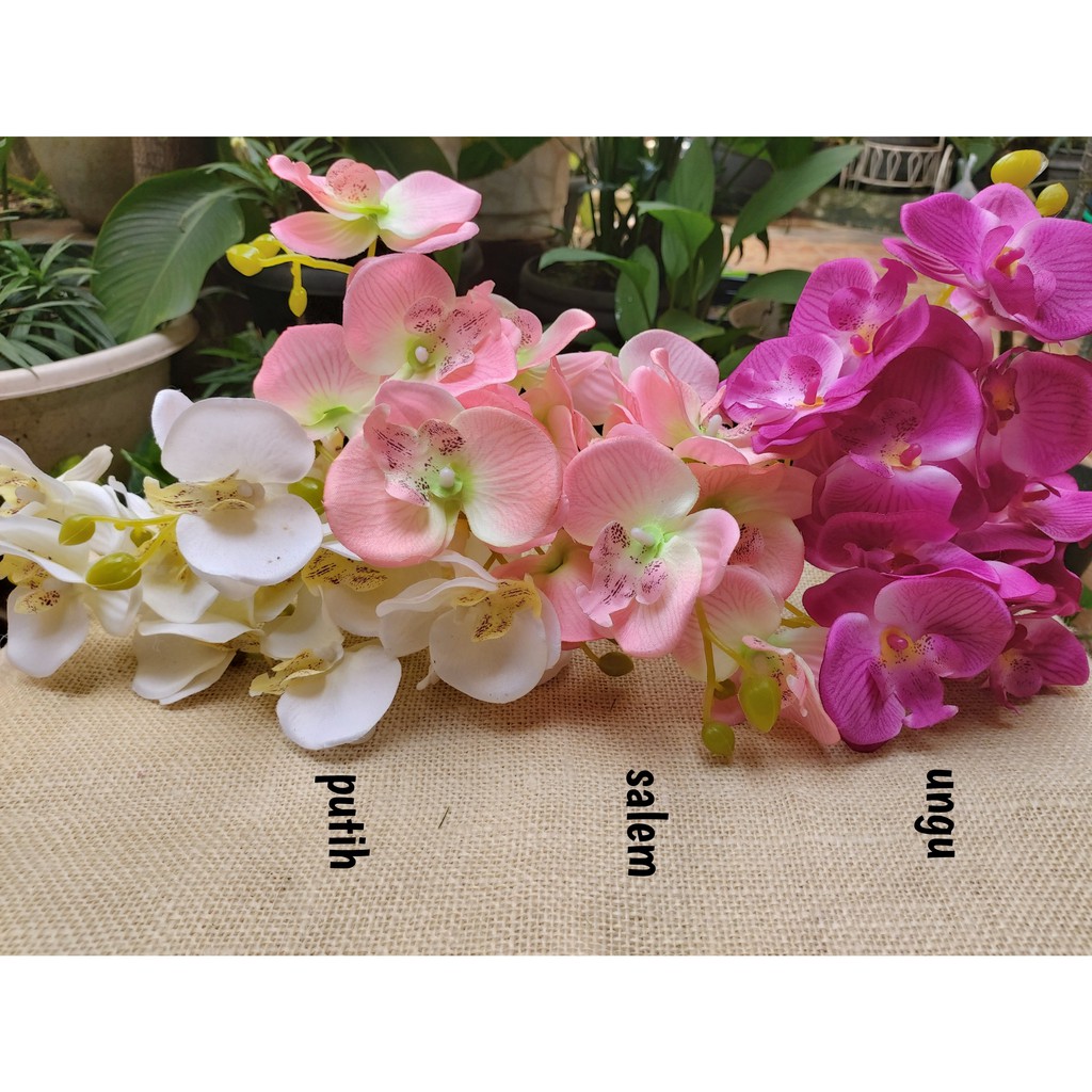 BUNGA ANGGREK PLASTIK + POT PUTIH 18 CM | Bunga Plastik