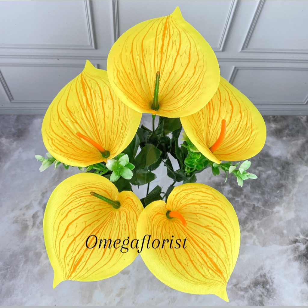 Bunga Aron Panda Cabang 5 calalily Bunga Artificial / Bunga Plastik / Bunga Dekorasi / Dekorasi Pernikahan / Pernikahan