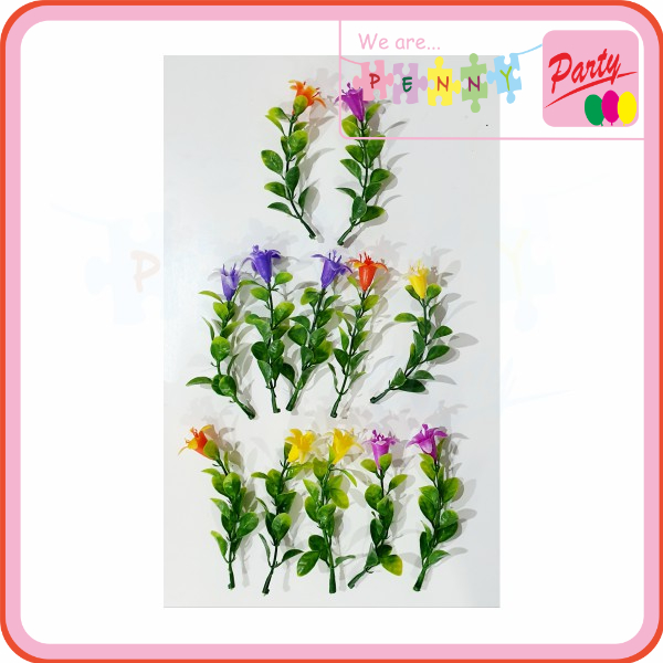 Bunga Daun Plastik A01 SET 12pcs AQUASCAPE Hiasan Kue Tar Tart Maket Ulang Tahun MAHAR