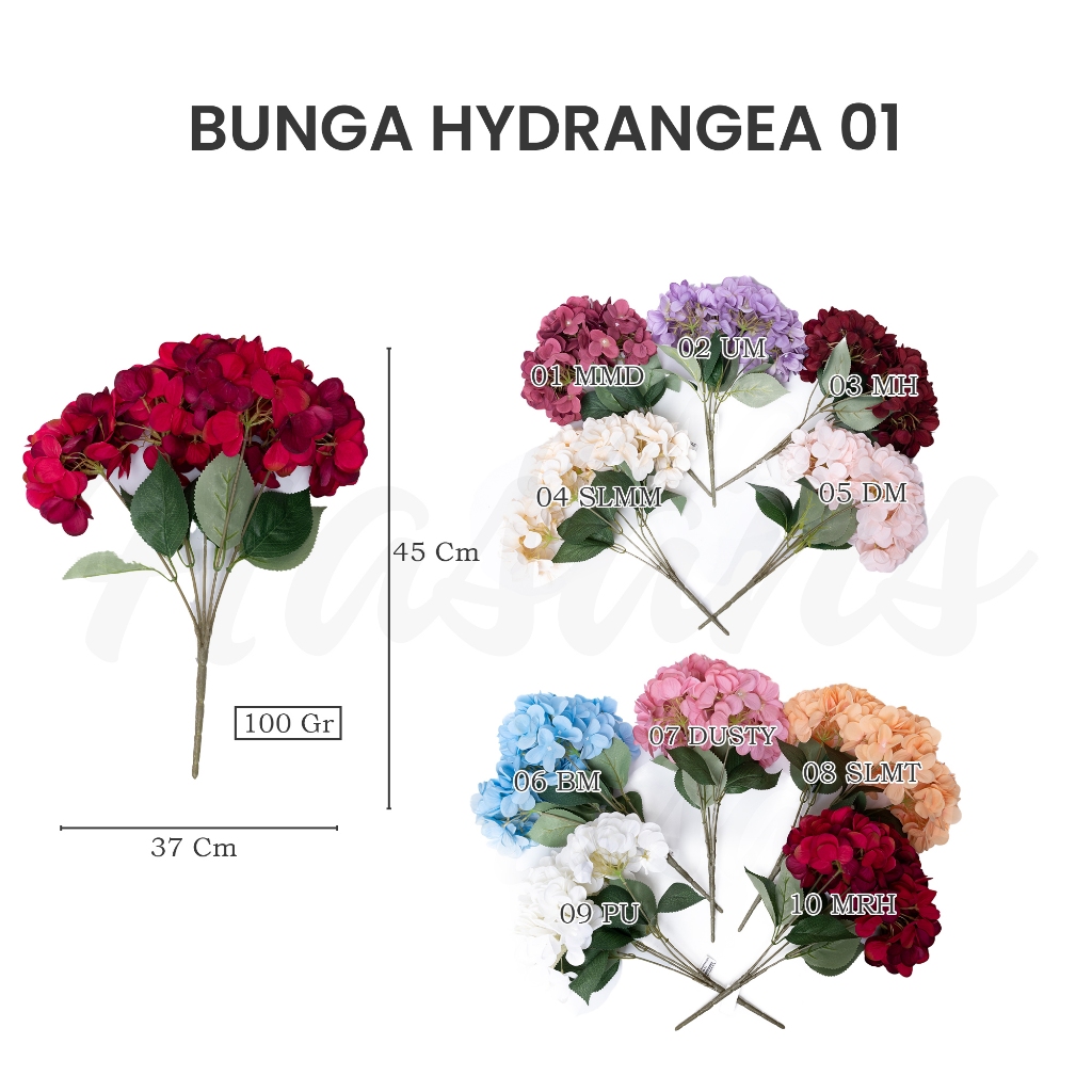 Bunga Hydrangea Artificial / Bunga Hydrangea Plastik / Bunga Hydrangea Imitasi Palsu / Bunga Hias Dekorasi / Bunga Hydrangea 01