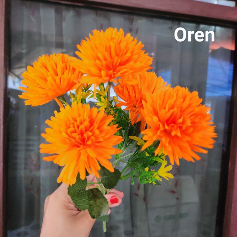 Bunga Krisan Seruni / Bunga Pompom hias dekorasi ( Tanpa Pot )