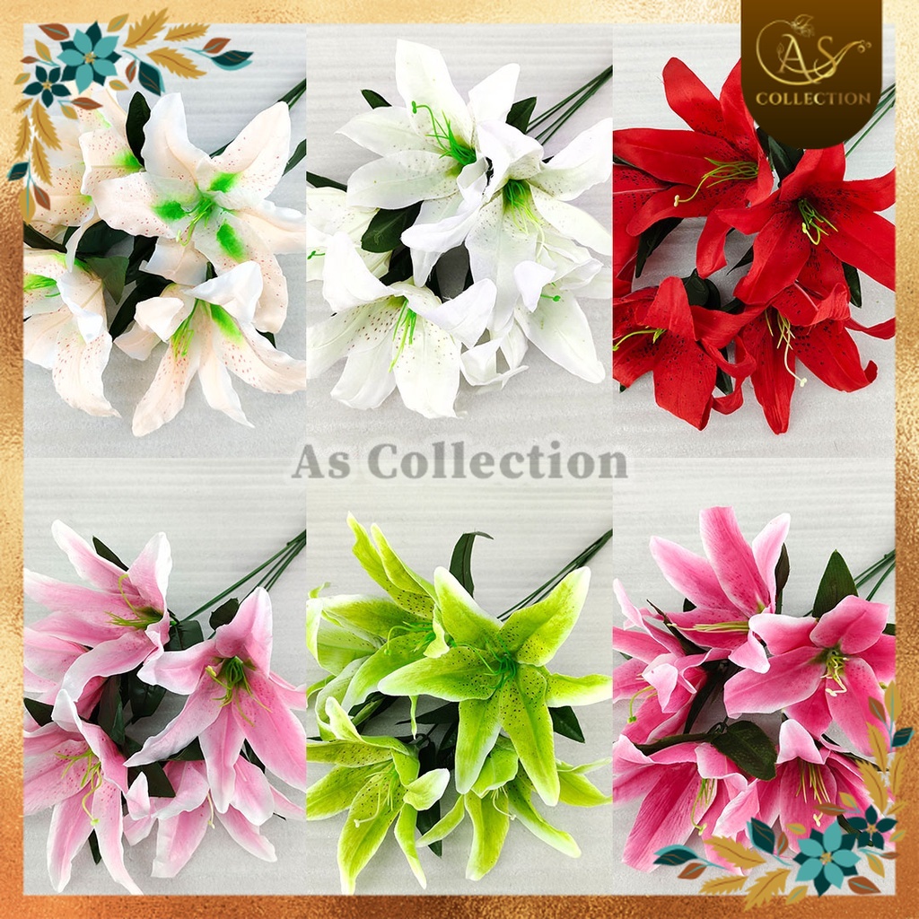 Bunga Lily Cabang 5 - Dekorasi Lily Tiger Casablanca plastik lili Hiasan Pernikahan Bunga Artificial Murah