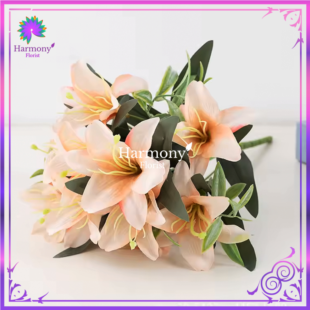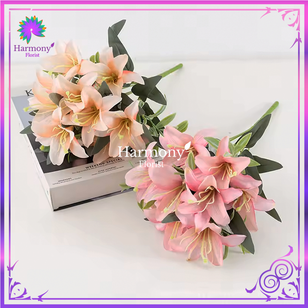 Bunga Lily Flower Cabang x5 Dekorasi /Bunga Lyly Hias Dekorasi/Bunga Artifcial Premium- (NK-105)