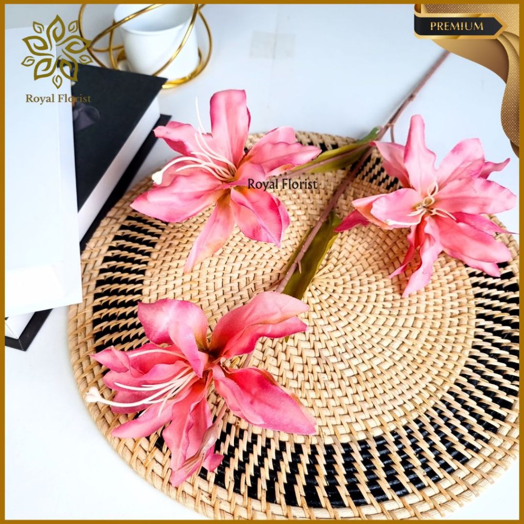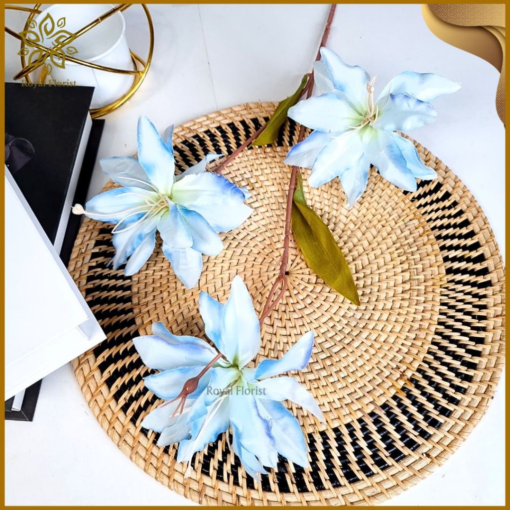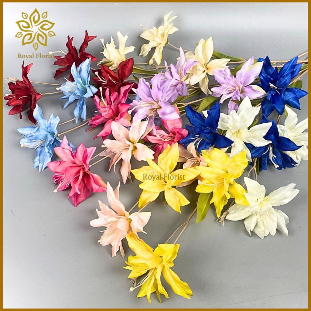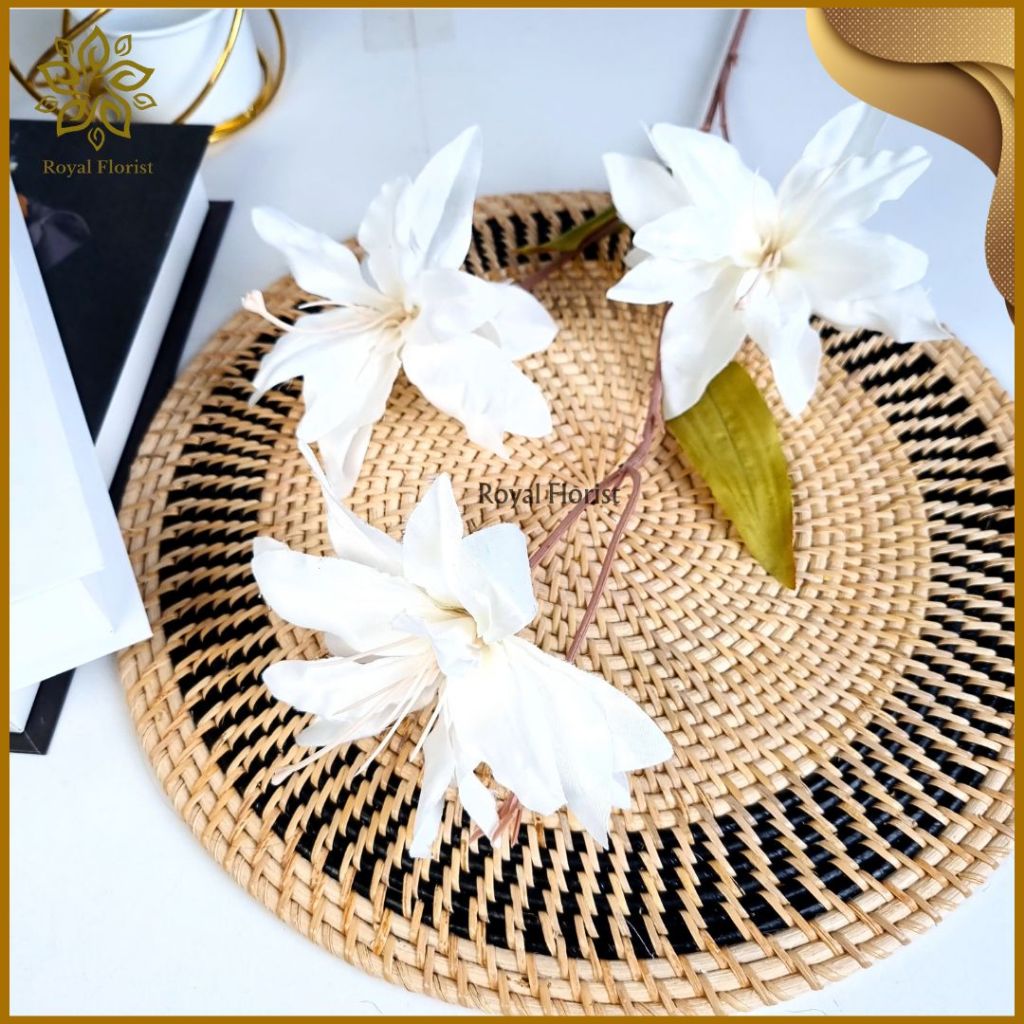 Bunga Lily Tangkai Panjang Artificial 3 Cabang/Bunga Kamboja/Bunga Hias Dekorasi Pelaminan (NK-203)