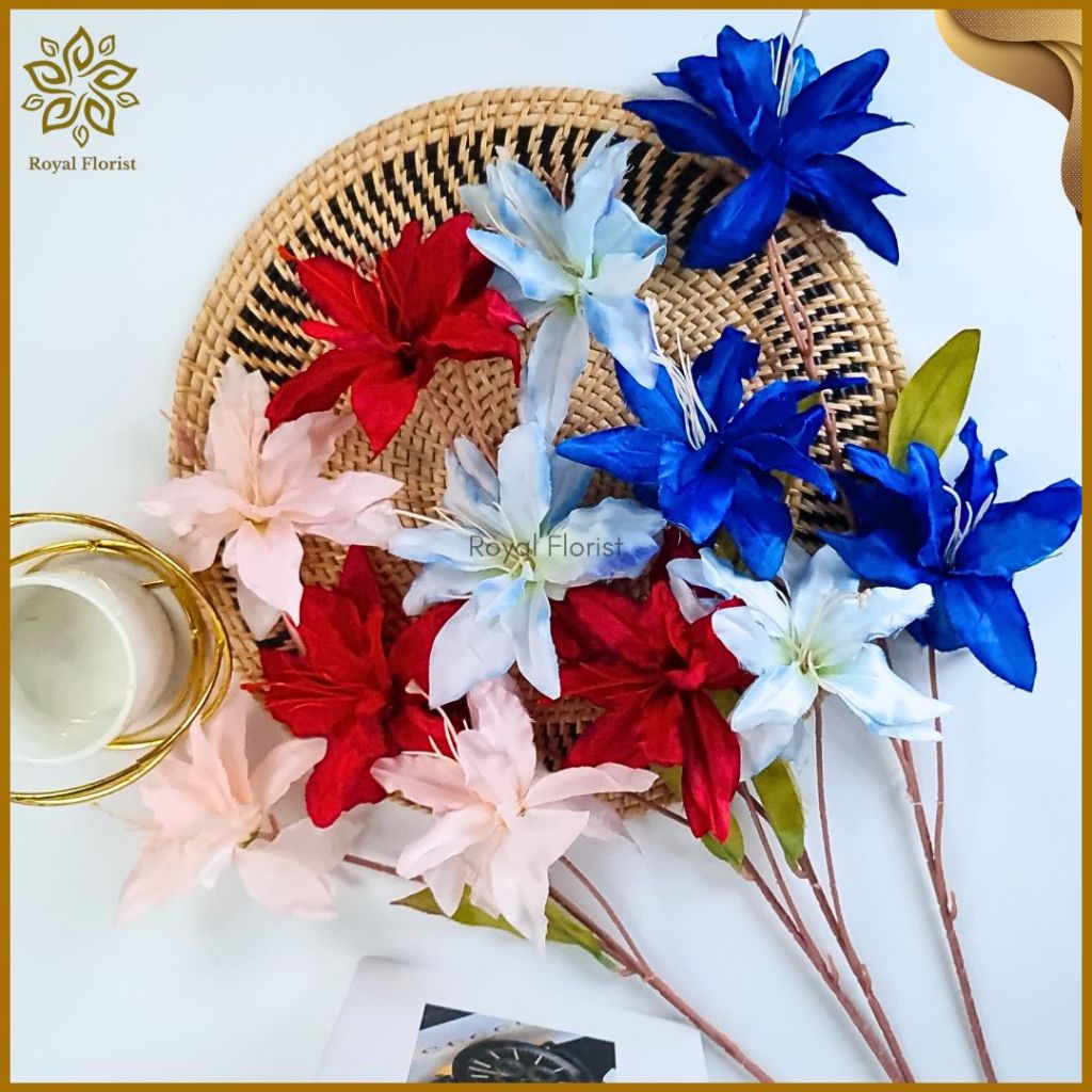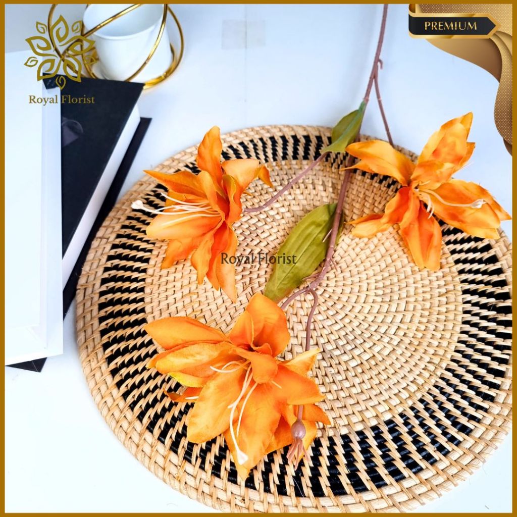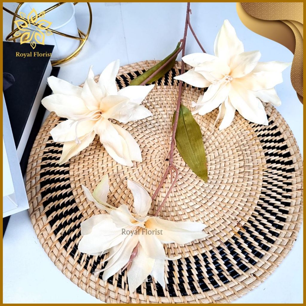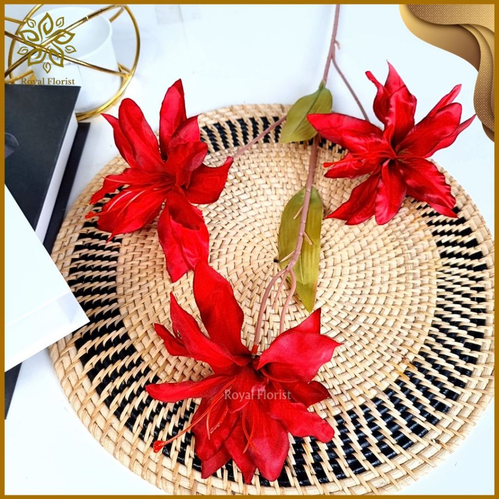 Bunga Lily Tangkai Panjang Artificial 3 Cabang/Bunga Kamboja/Bunga Hias Dekorasi Pelaminan (NK-203)