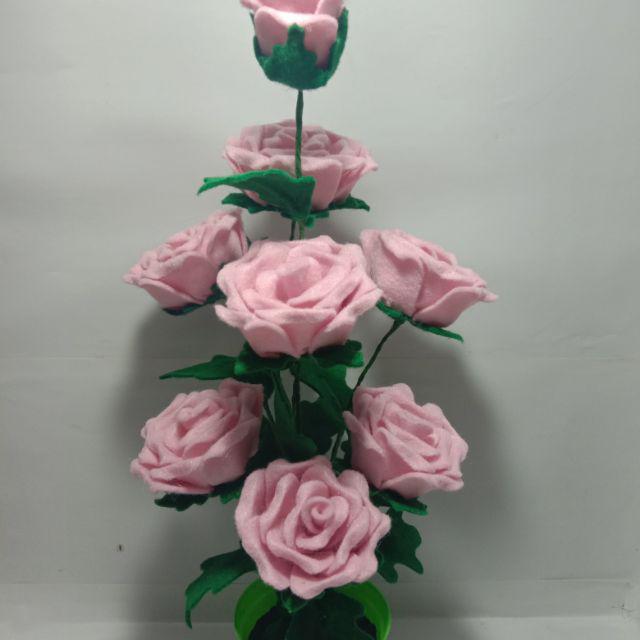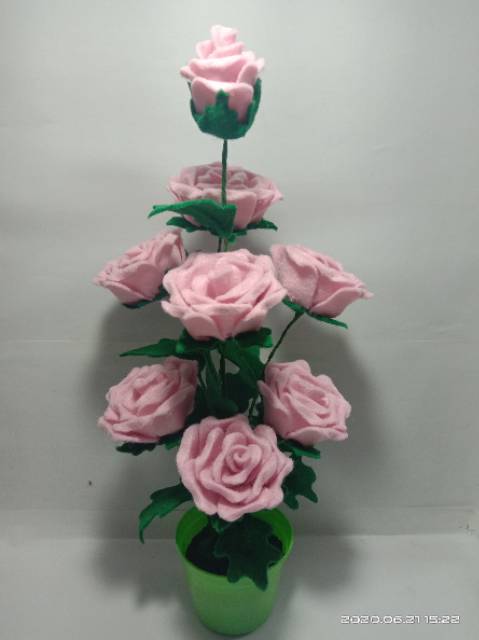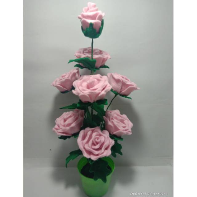 Bunga Mawar flanel dalam pot Bunga Mawar warna pink untuk dekorasi ruang atau bunga hias meja