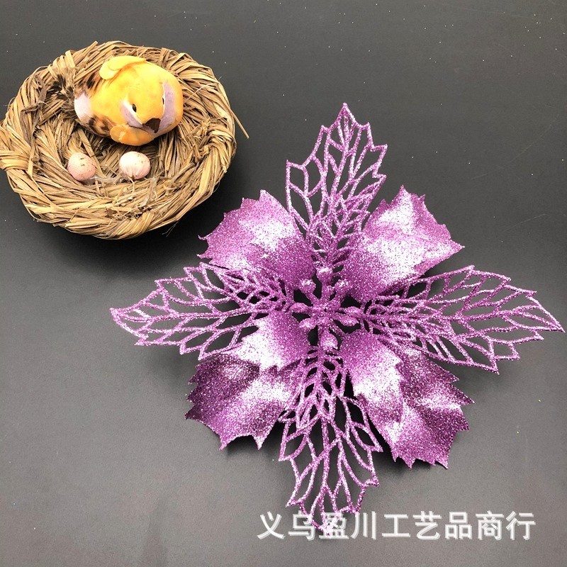 GROSIR Bunga Natal 10 cm Dekorasi Parcel Natal Bunga Kilap Kado Bunga Gliter Gold Merah Murah