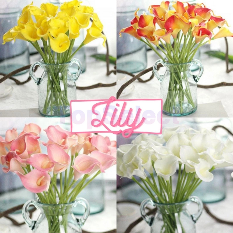 Bunga Palsu Latex Premium Bunga Lili /Bunga Lily Hias Tangkai Palsu /Bunga Hias Tangkai Lily Artificial Flowers Bouquet /Fake Flowers Dekorasi Wedding Bunga Lily