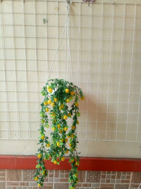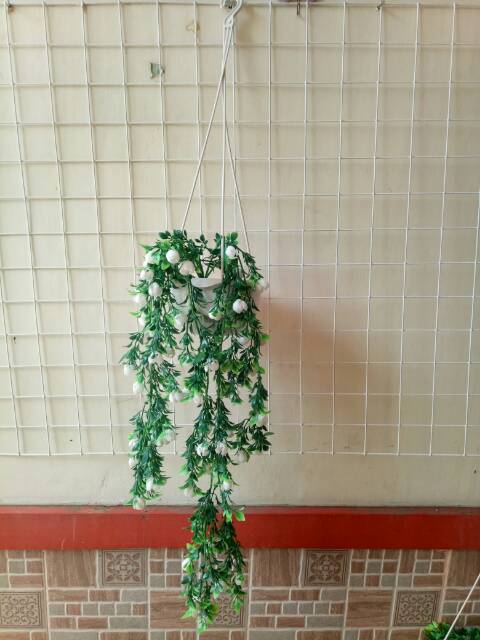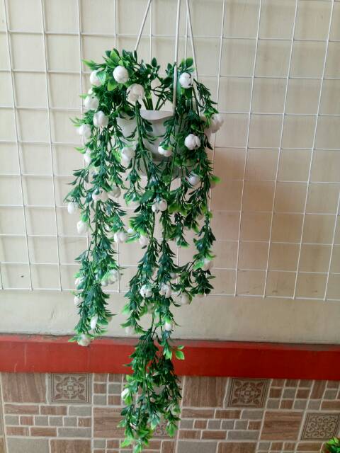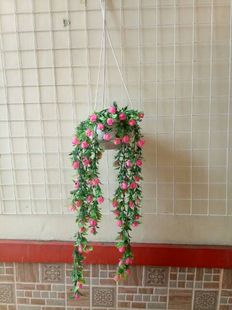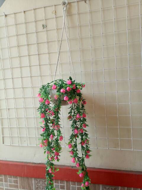 Bunga Priti +pot gantung tali /bunga juntai plastik /Bunga Gantung