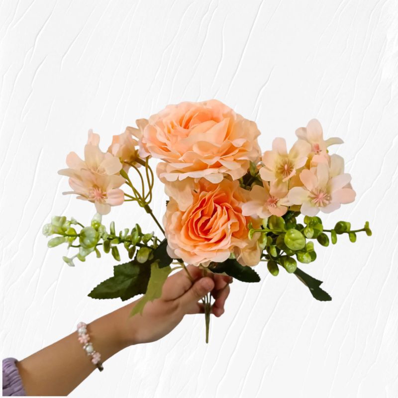 Bunga Rose Mawar Tropis Kombinasi Aster Cabang 5 (Satuan) Bunga Dekorasi Premium Peony Mawar