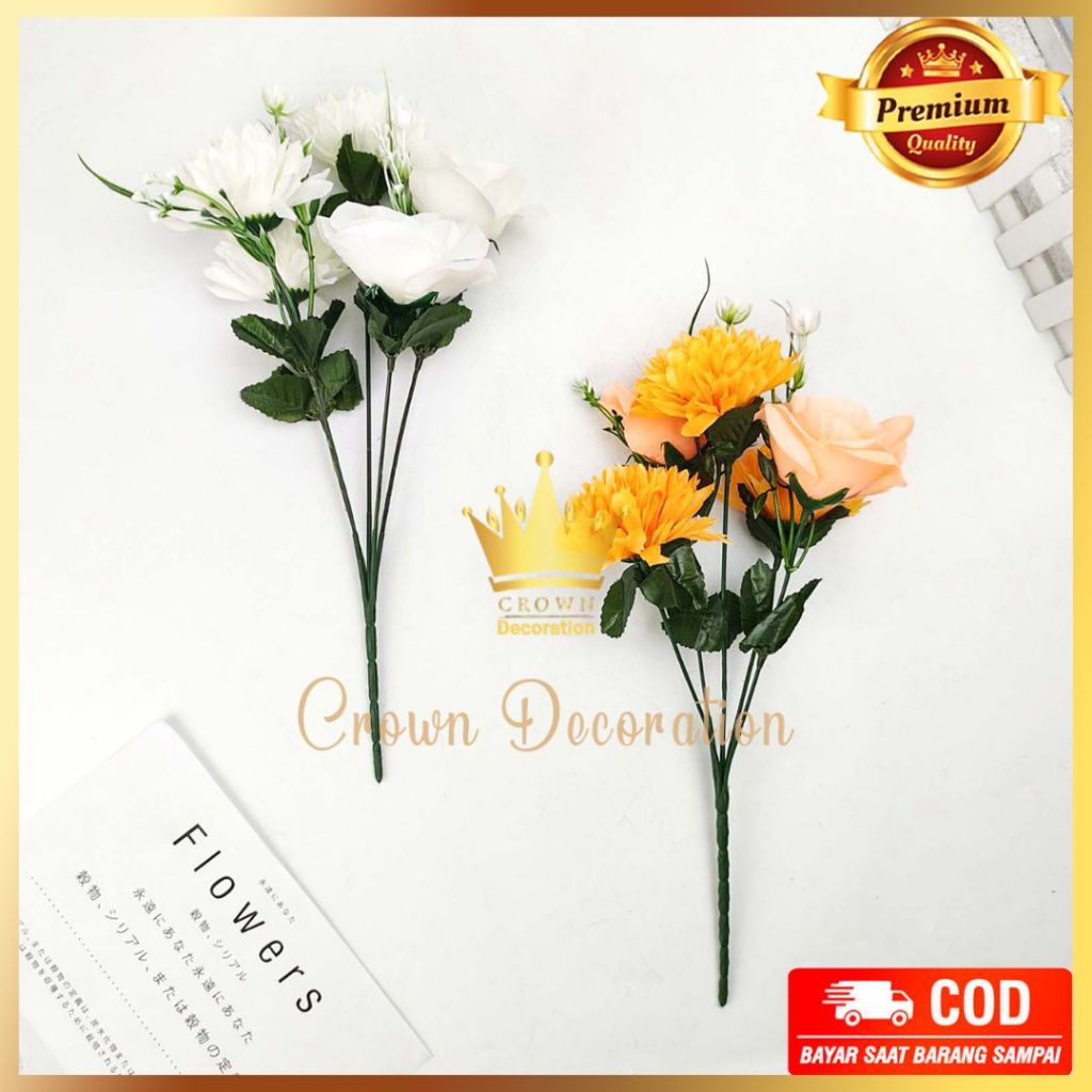 Bunga Rose Mix Rose Mawar Cabang 5 Artificial Hiasan Seserahan Rustic Flower Bunga Buatan untuk Dekorasi Cafe Rumah Bunga Pernikahan Wedding atau Pelaminan Pesta Hias Import Termurah Artifisal