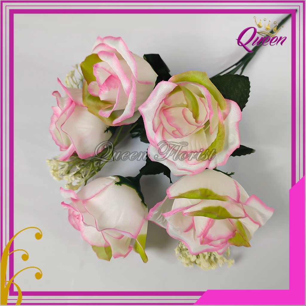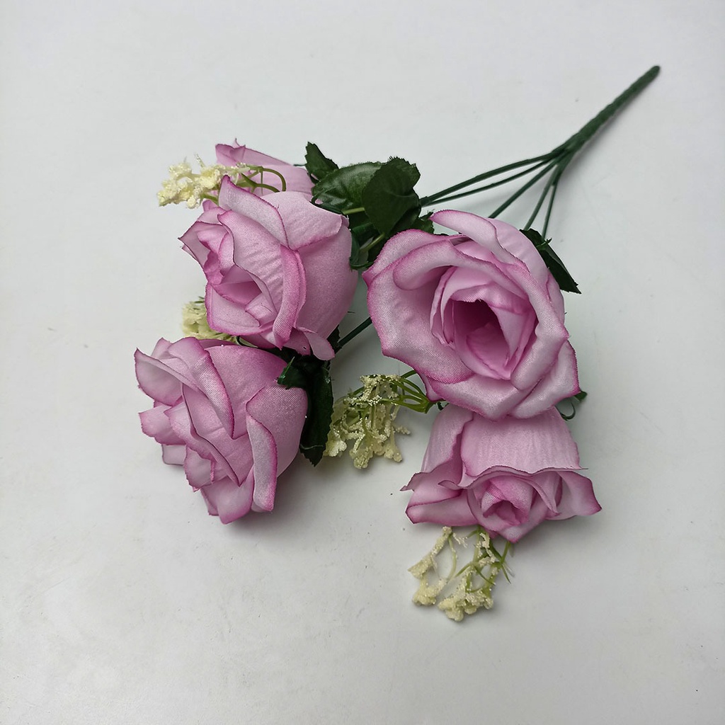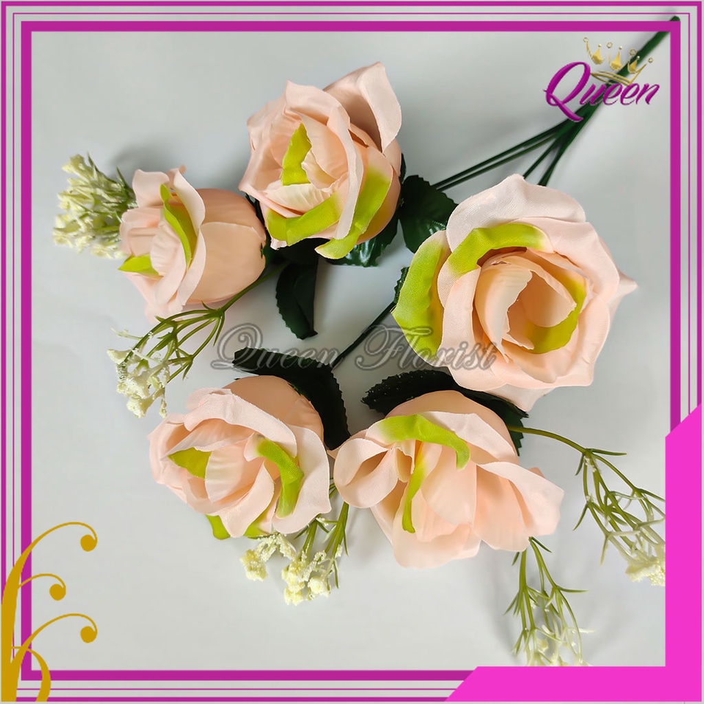 Bunga Rose Tropis Cabang 5 Artificial Premium - Mawar Kuncup Kain Bunga Plastik - Dekorasi