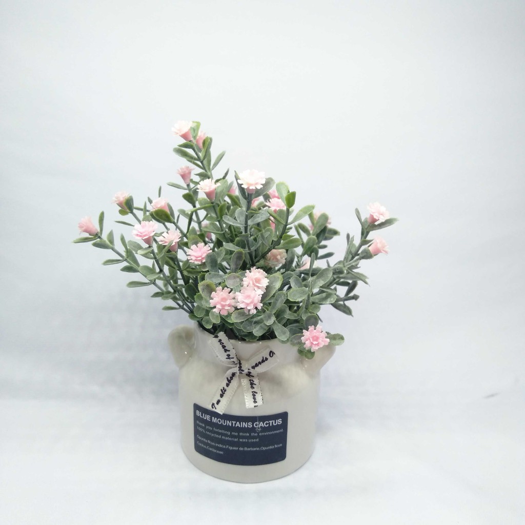 Bunga Tiruan Artificial Dgn Vas Mini - Bunga Hias Plastik Murah -Bunga Palsu Dekorasi Rumah - VBK05