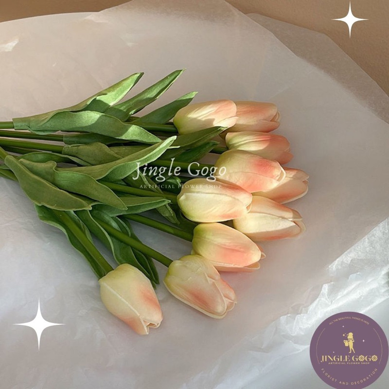 Bunga Tulip Artificial Satuan PINK PEACH Tulip Latex PREMIUM Real Touch Seperti Asli untuk Bunga Hiasan / Buket / Tulip Plastik Bunga Hias Seserahan Hantaran Hampers