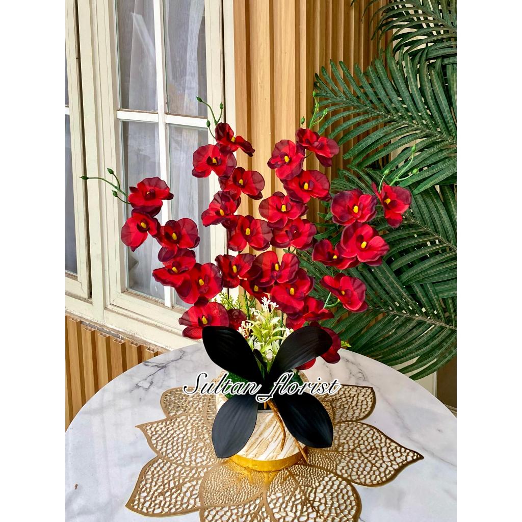 Bunga Anggrek kain 4 Cabang artificial dekorasi