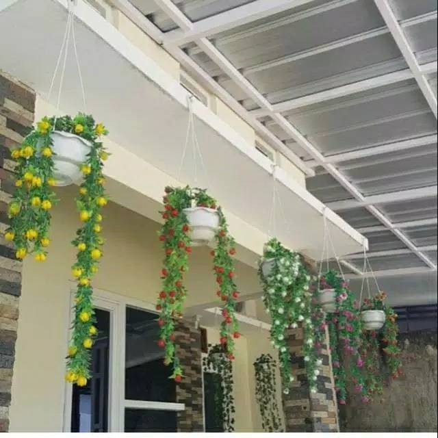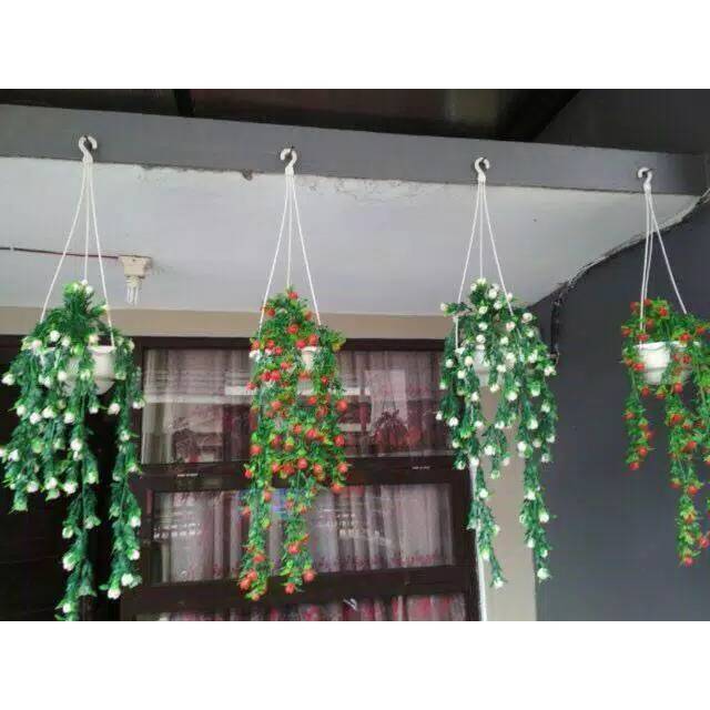 Bunga gantung bunga juntai dengan pot bunga mawar plastik