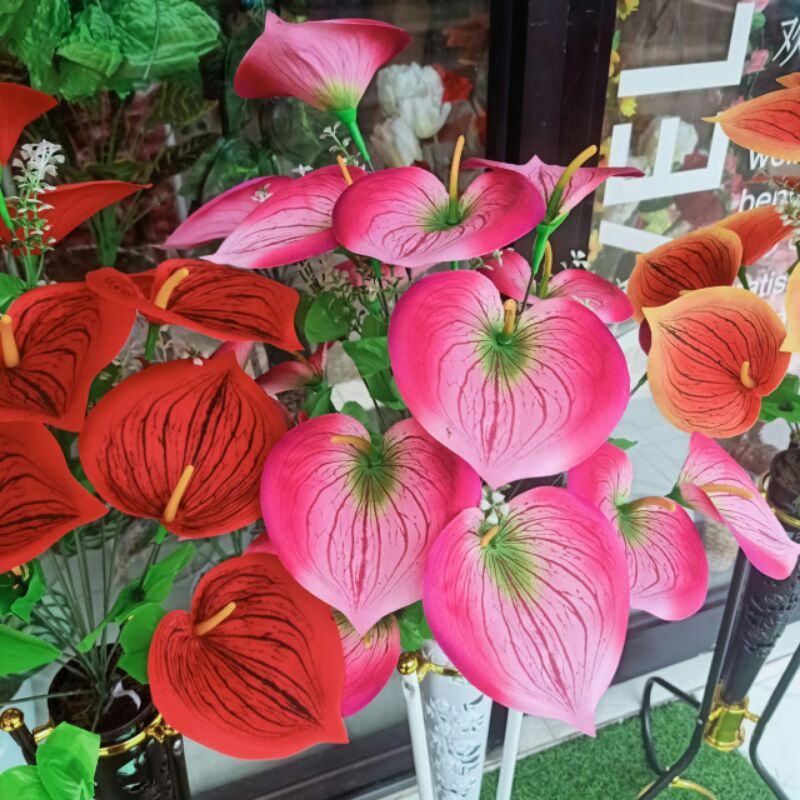 Bunga lily bunga aron hias pot standing bunga plastik dekorasi rumah