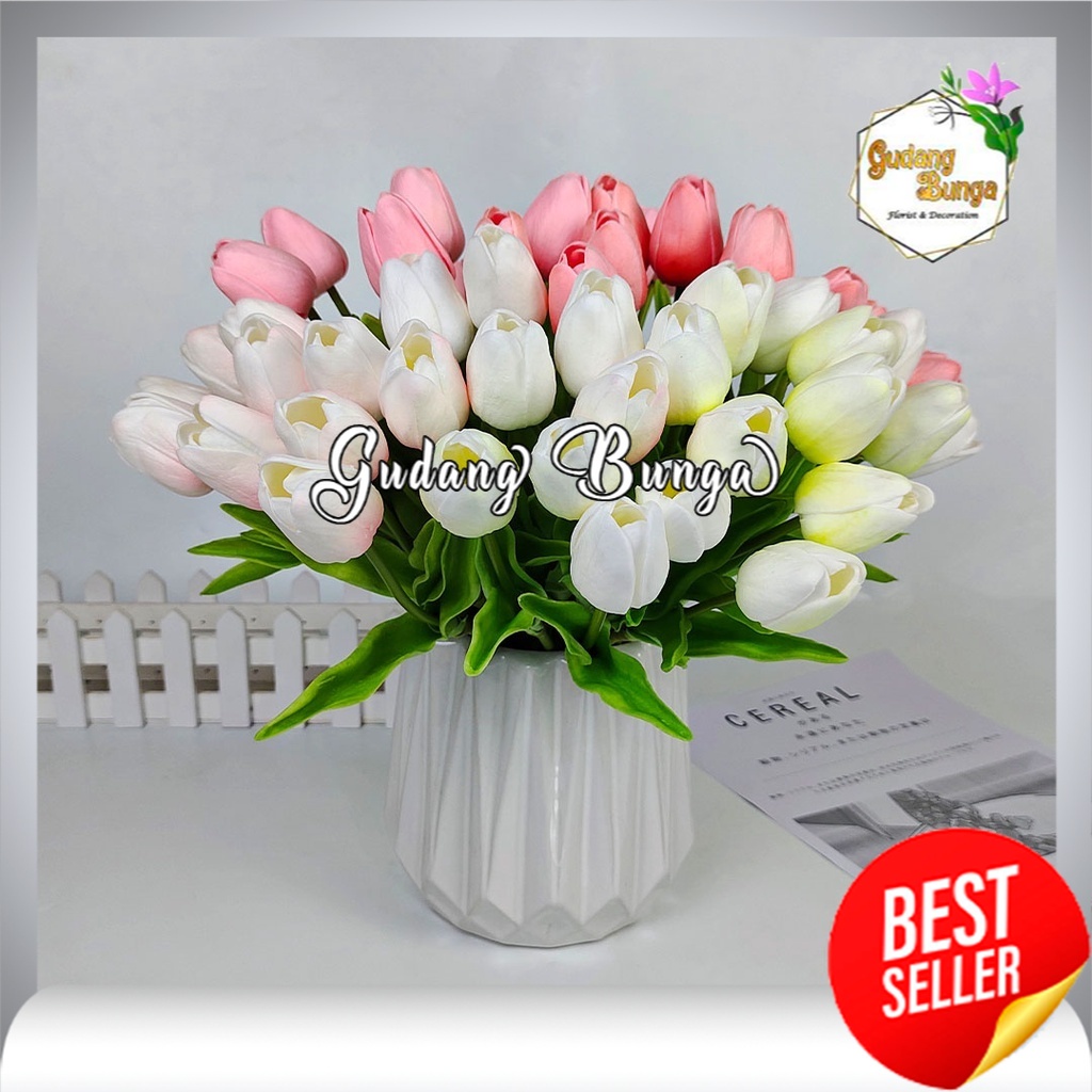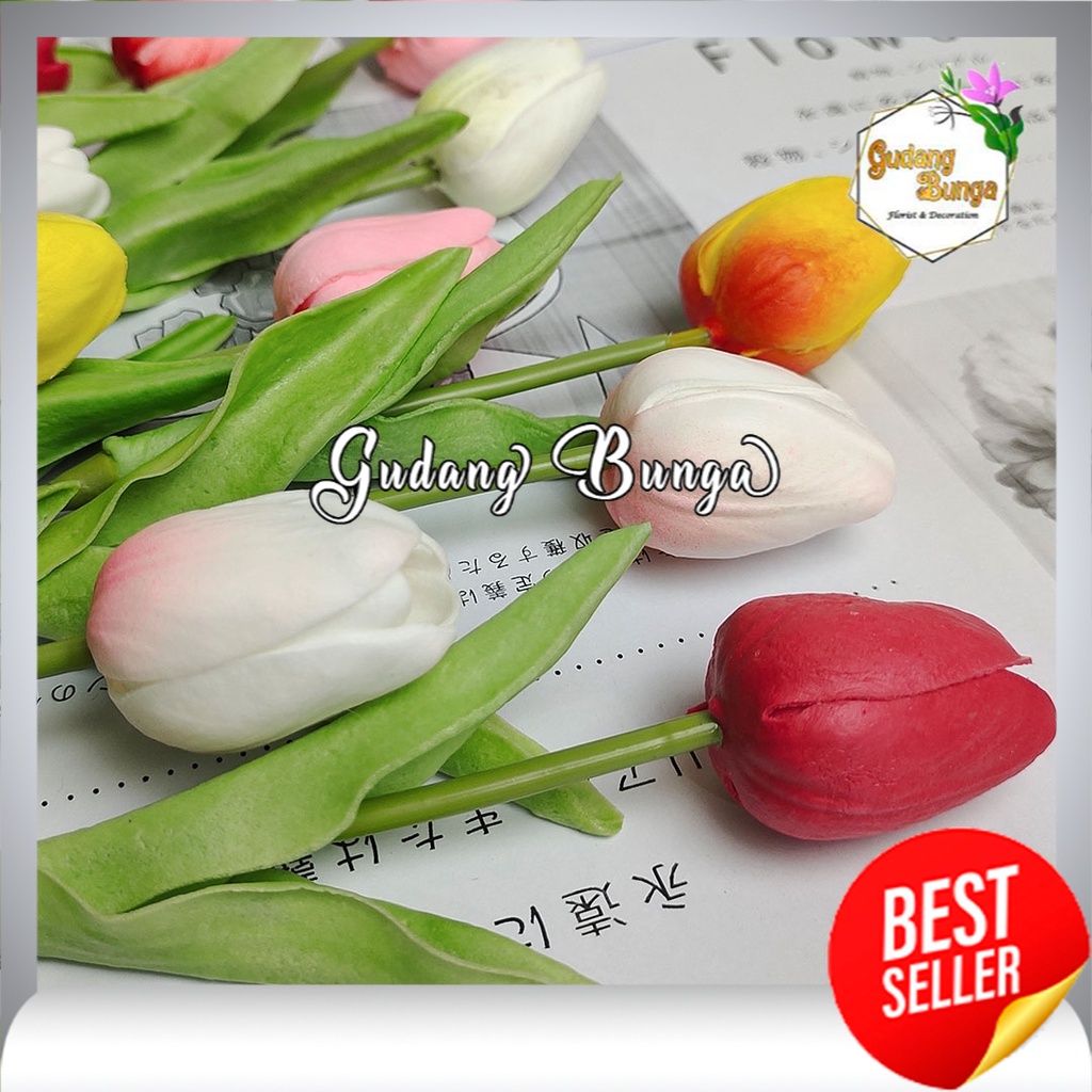 Bunga mawar Tulip latex 1 cabang - bunga plastik - Imitasi bunga asli - Imitasi bunga mawar tulip - bunga tulip artificial