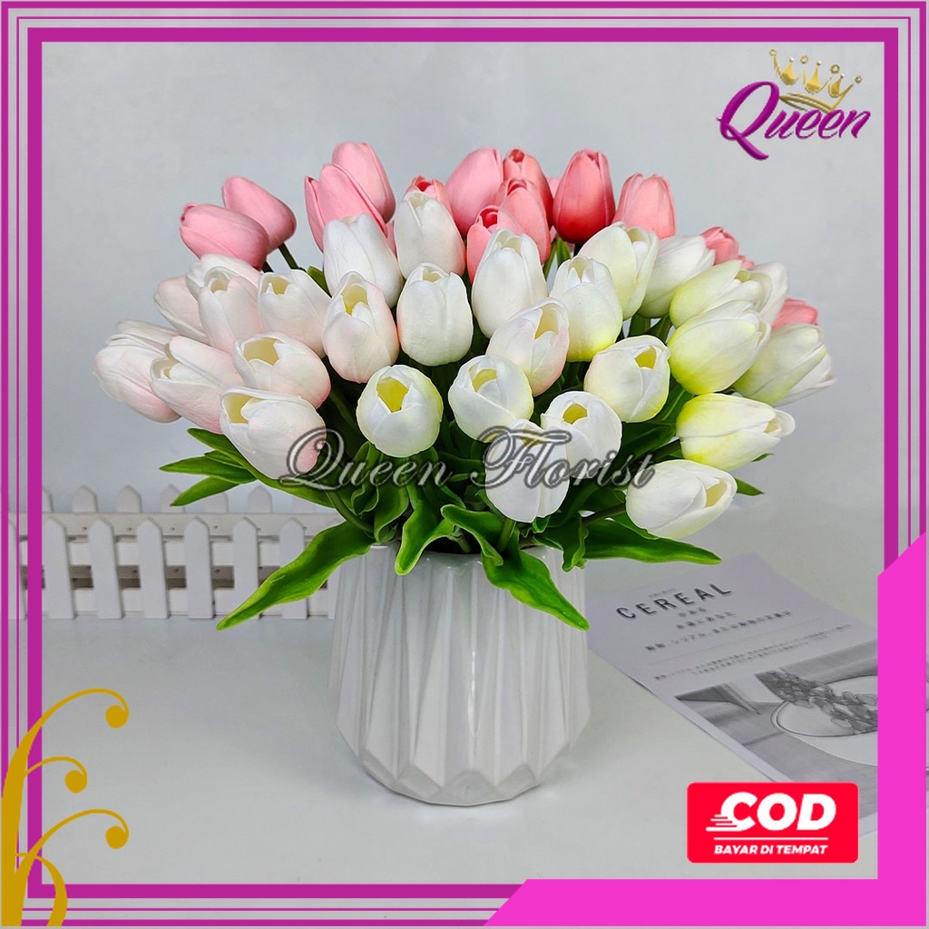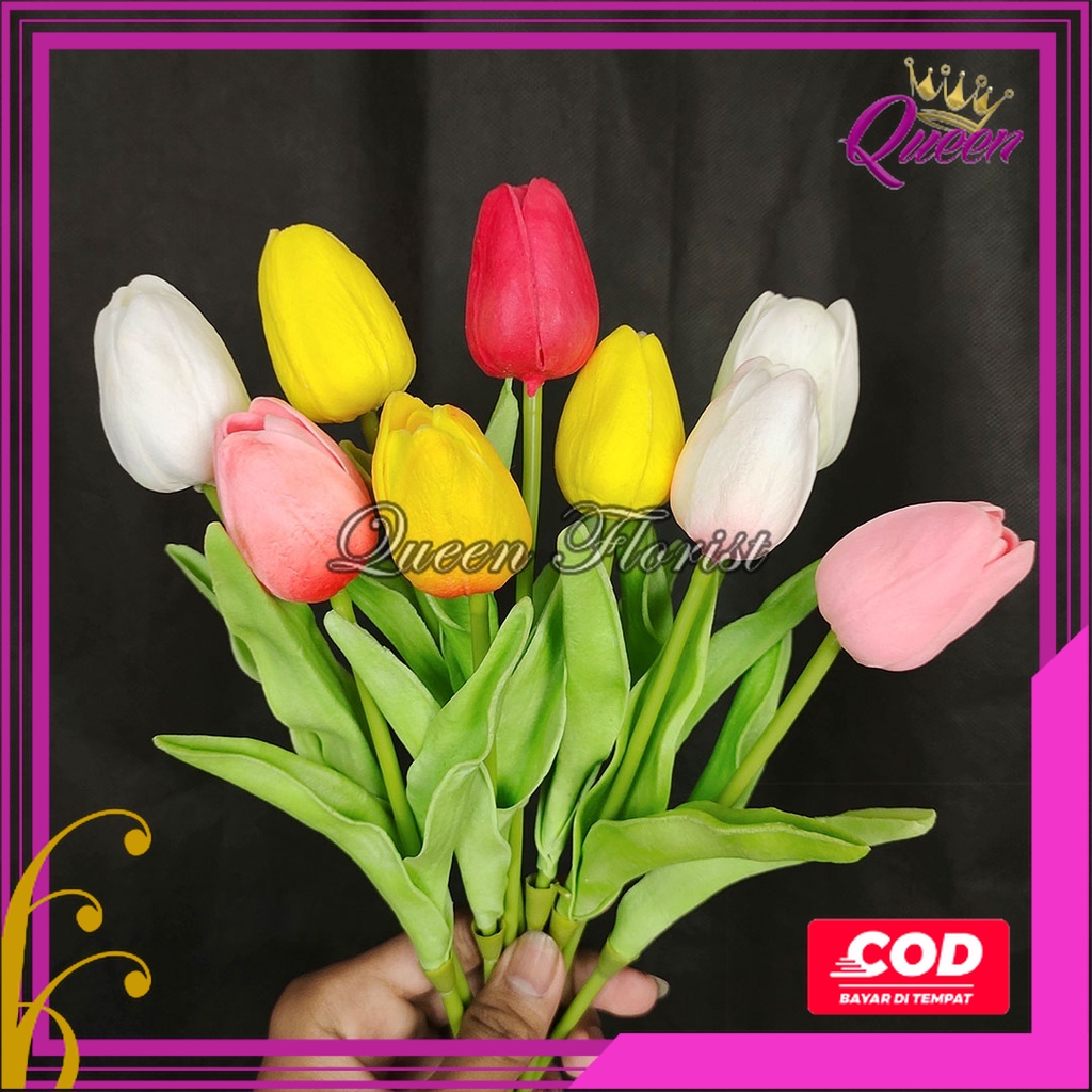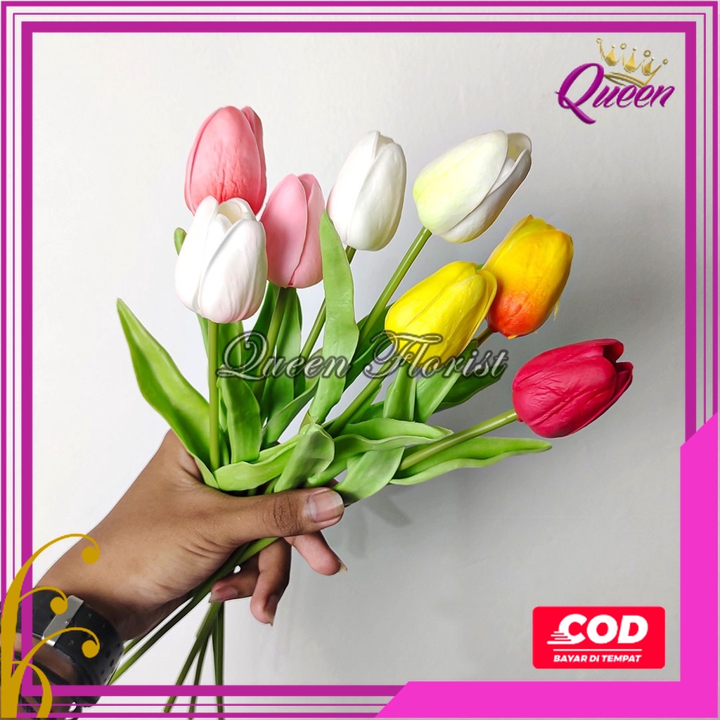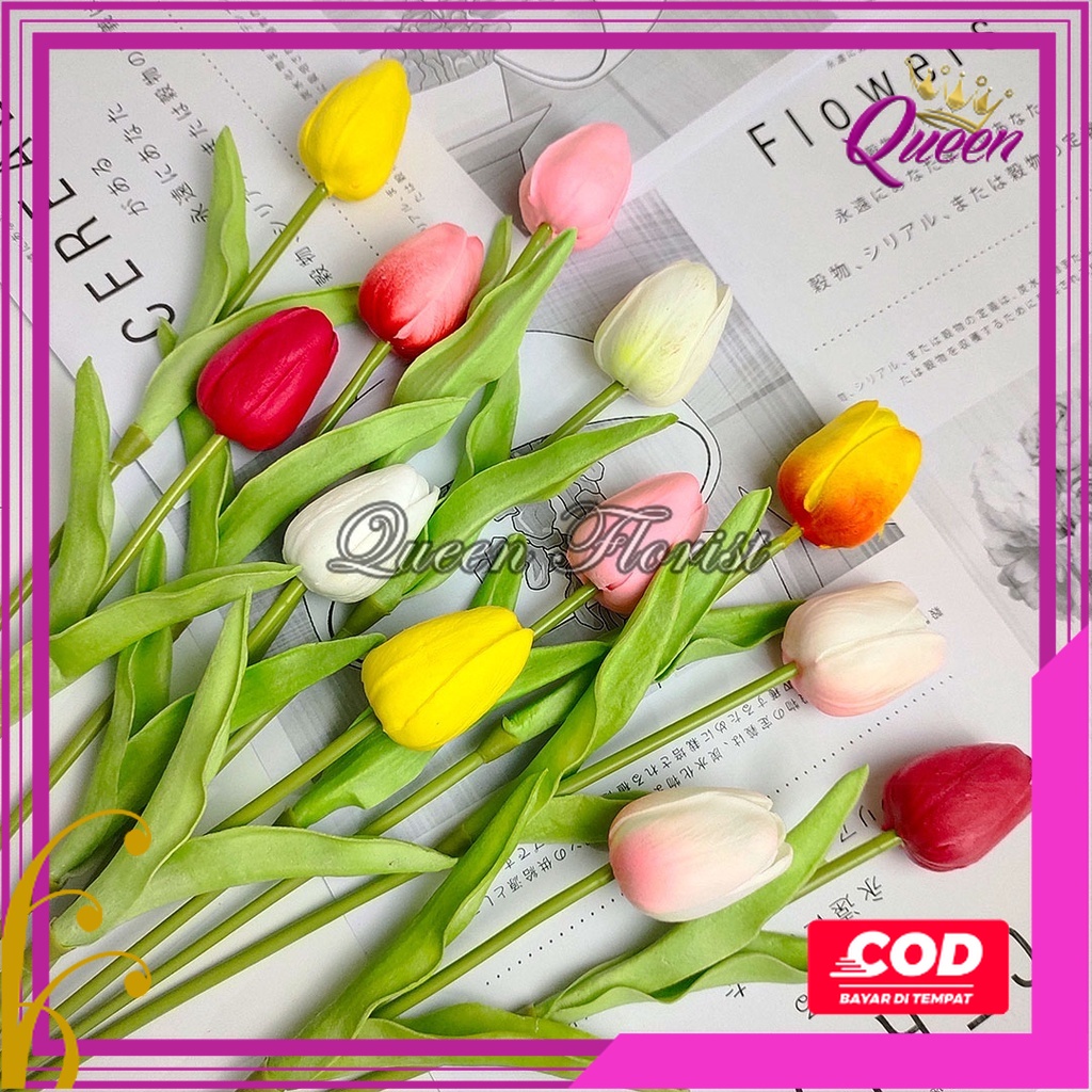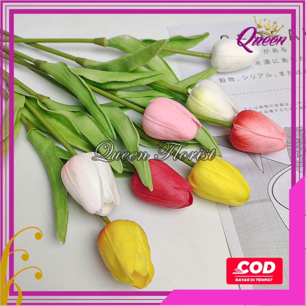 Bunga mawar Tulip latex 1 cabang - hiasan Imitasi bunga mawar tulip - Imitasi bunga asli - bunga tulip artificial - Tanaman bunga plastik hias