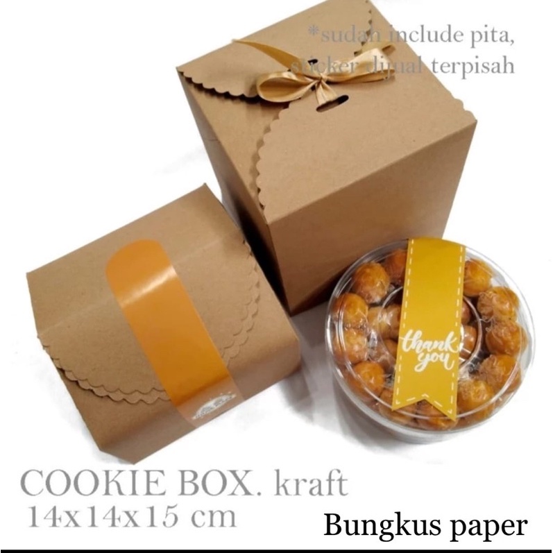 Bungkus paper- Cookie box 14x14x15cm : toples kue 500gr / box kue hampers /box kue