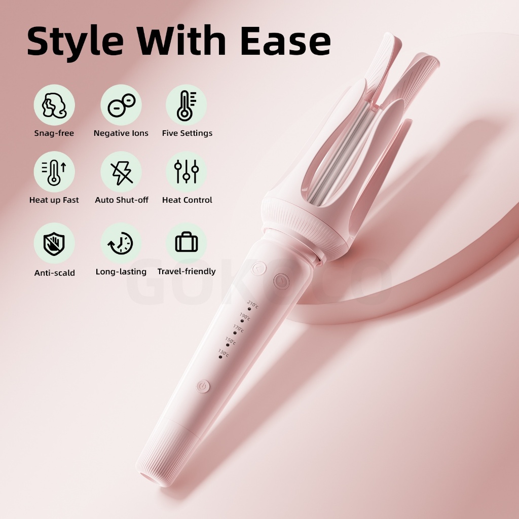 GOKOCO Catokan Rambut Ceramics 32mm Catokan Curly Otomatis Curly Rambut Curling Iron Ion negatif hair curler