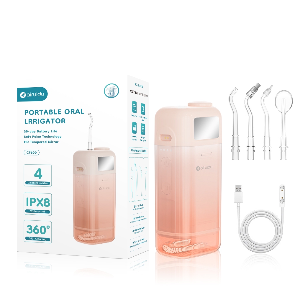 Airuidu CF600 Water Flosser 200ML Lipat Dengan Cermin 4 Mode Pembersih Gigi Elektrik IPX7