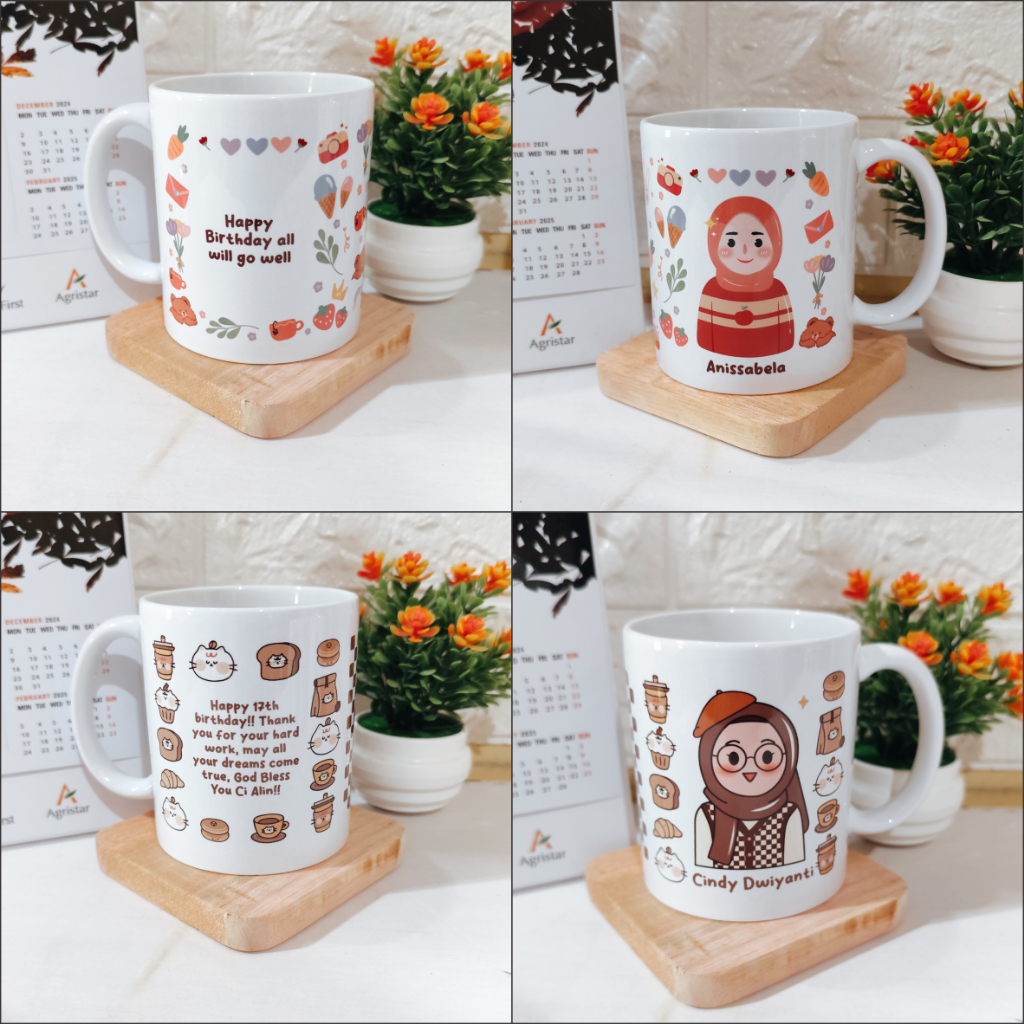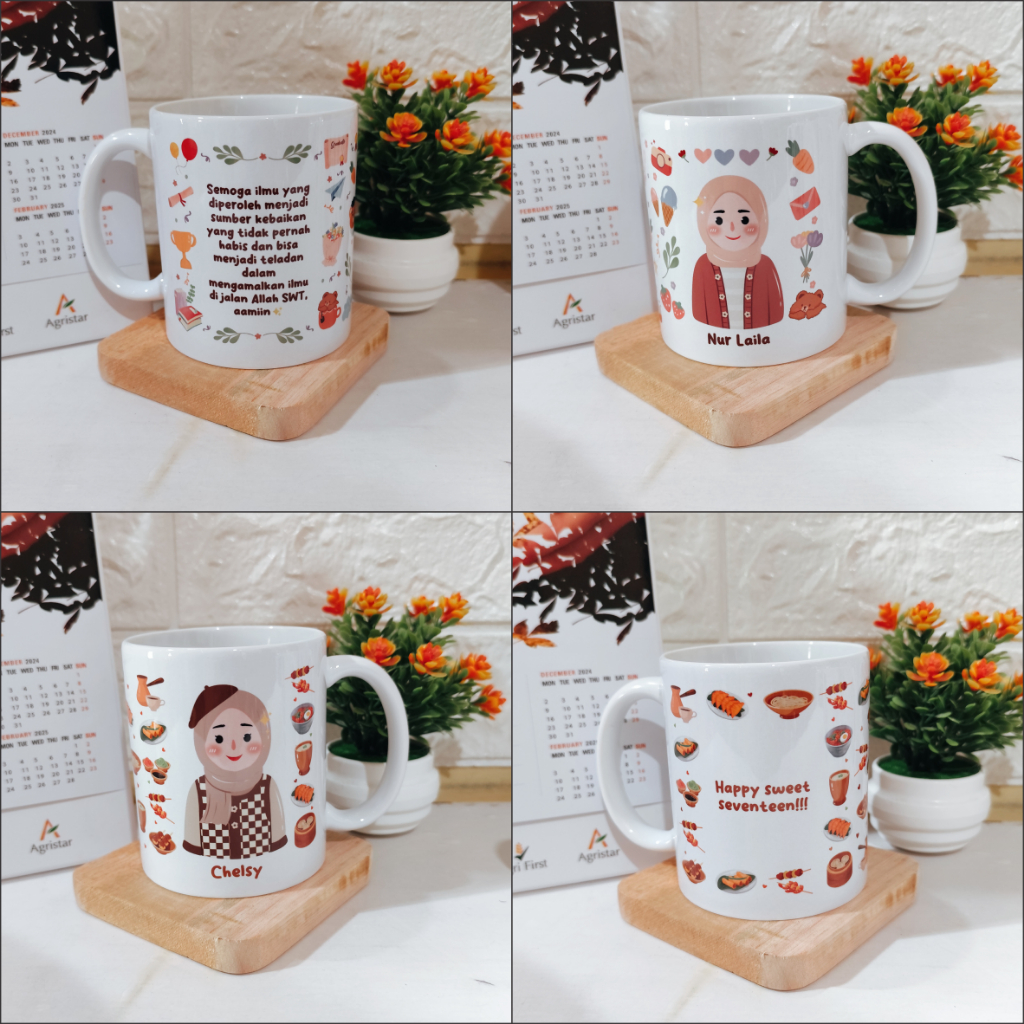 Souvenir Gelas Mug Custom Design Nama Hadiah Ultah Graduation Wisuda Hari Guru Buat Cewek Cowok