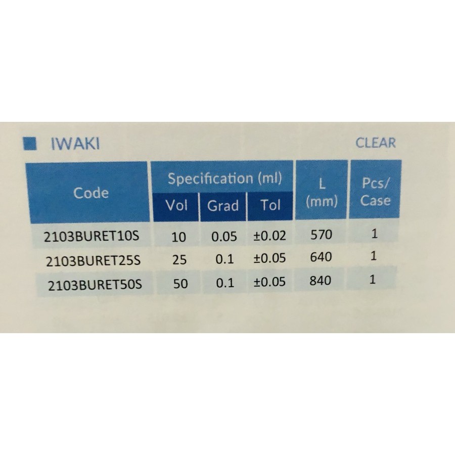 Buret 50ml / Burrete 50ml Amber Teflon Stopcock, Class A Iwaki