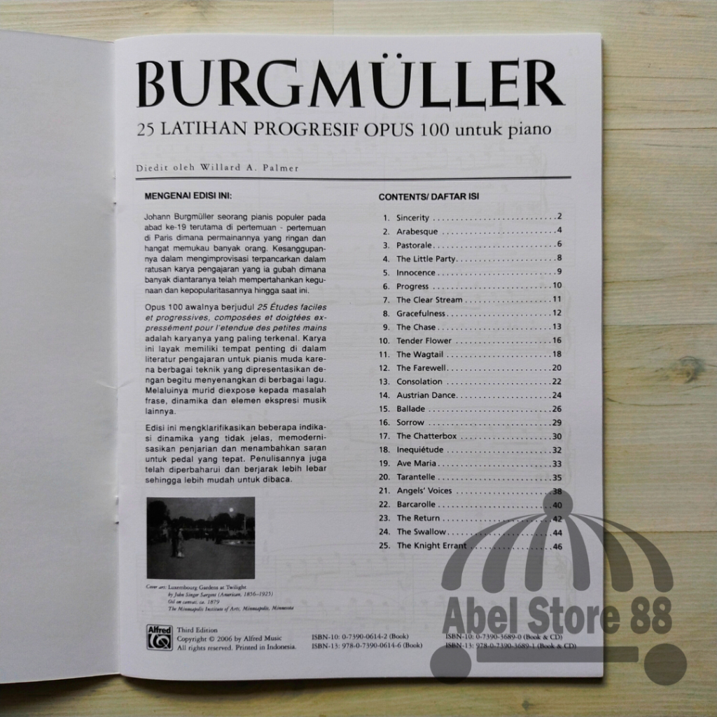 Burgmuller Op 100 / Opus 100 Buku Latihan Teknik Piano Studies 25 Progressive Pieces Edisi Indonesia