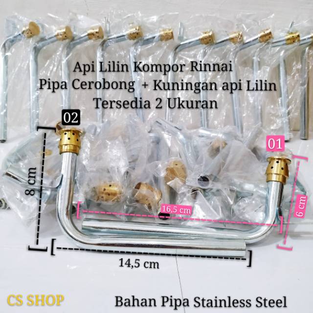 Burner api lilin dan Pipa L kompor gas rinnai
