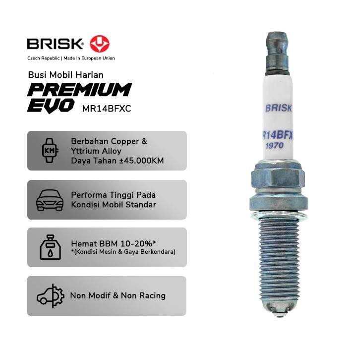 Busi Mobil Brisk Premium Evo MR14BFXC untuk Rush Terios Dual VVTI | Garansi Ori | Kunci Busi 14 mm