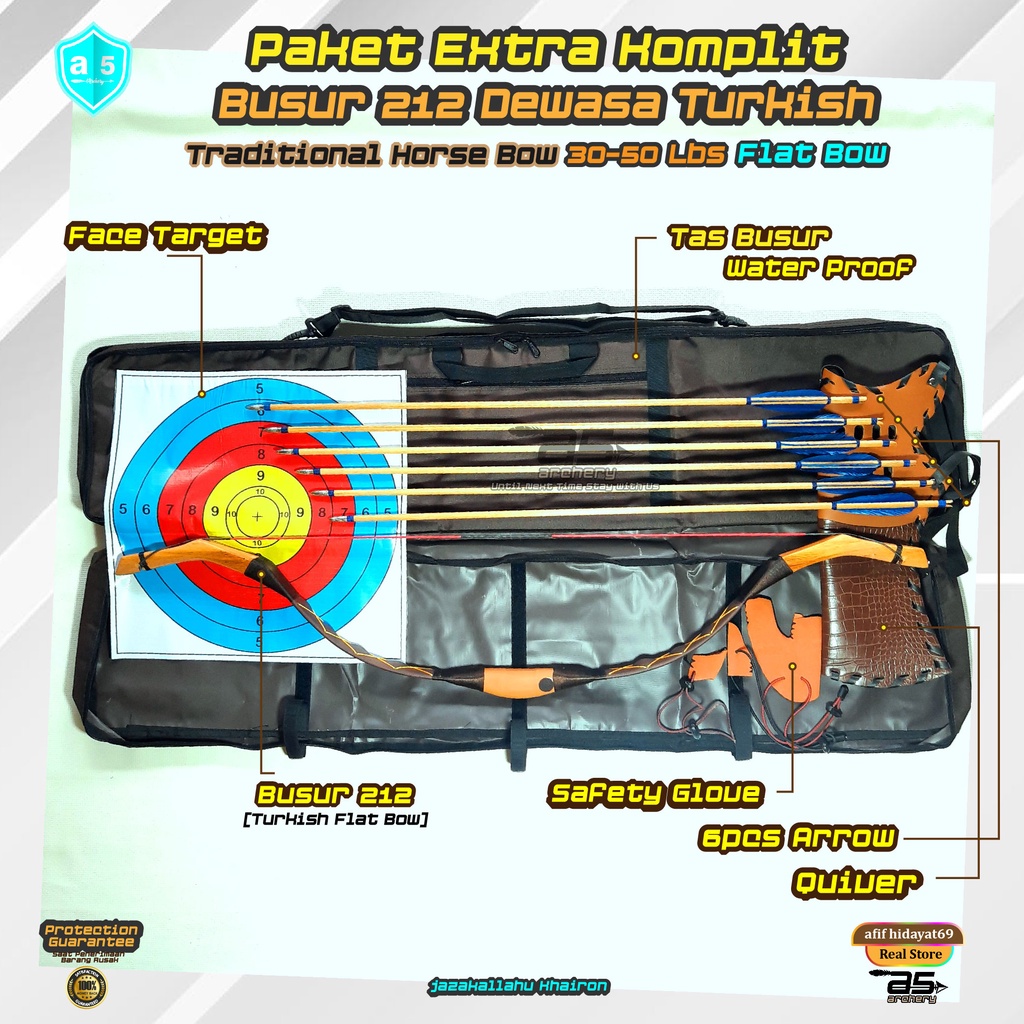 Busur Fiber Flat Dewasa Tipe Turkish 30Lbs-50Lbs Paket Extra Komplit Olah Raga Panahan Tradisional Outdoor