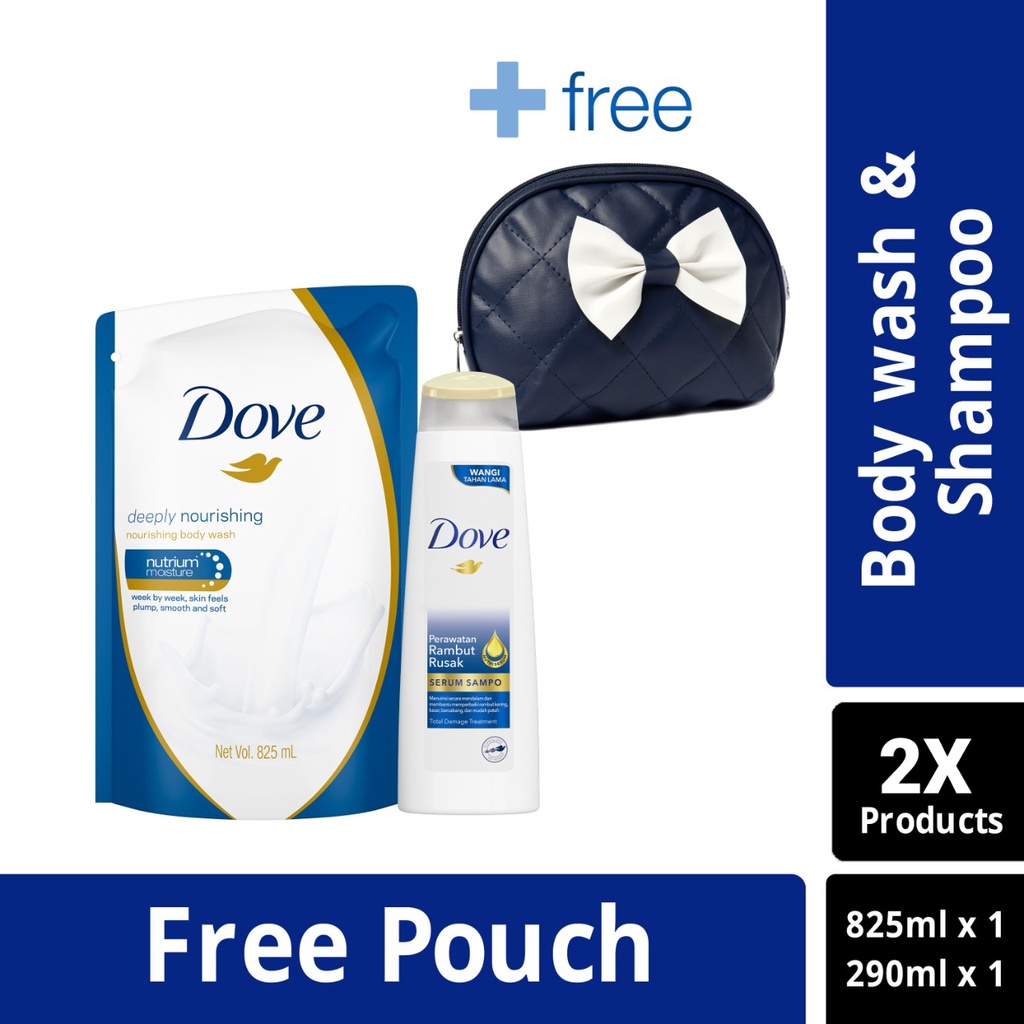 Buy 1 Dove Deeply Nourishing BW 825ml + Dove Perawatan Rambut Rusak 290ml FREE Pouch