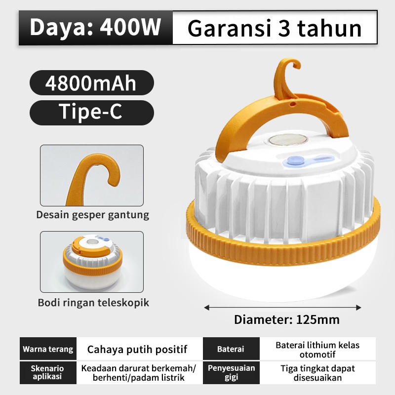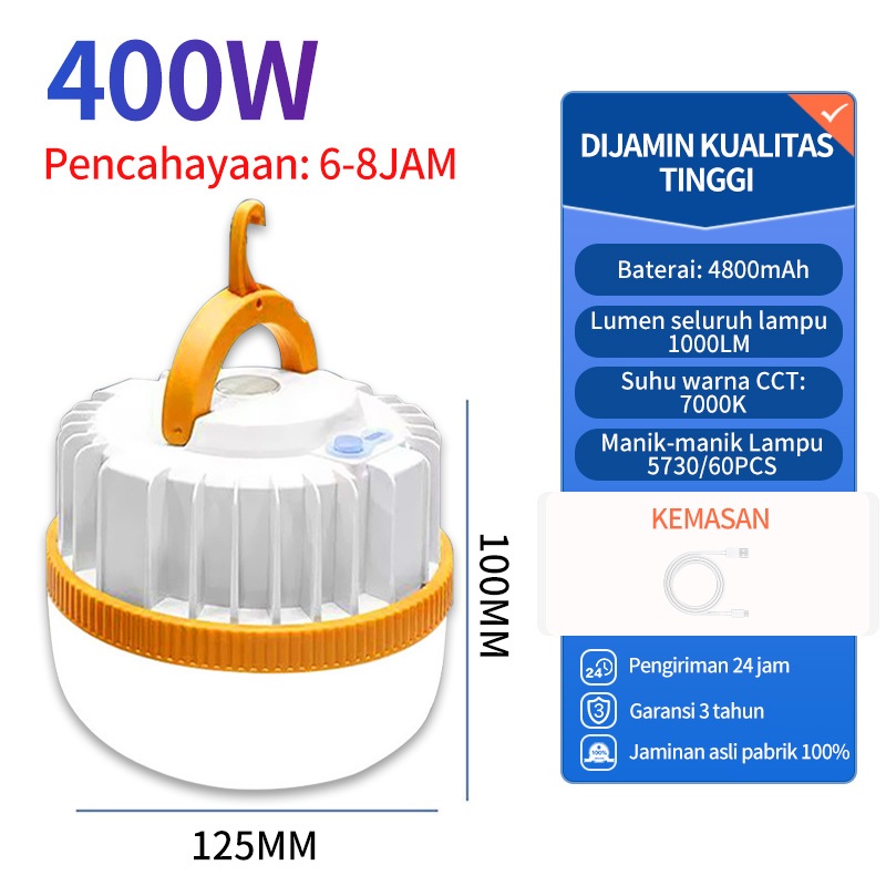 Garansi 5 Tahun COD Lampu LED Portable 300W/400W – Tahan 8-10 Jam Magnet Kuat 3 Mode Anti Air IPX6