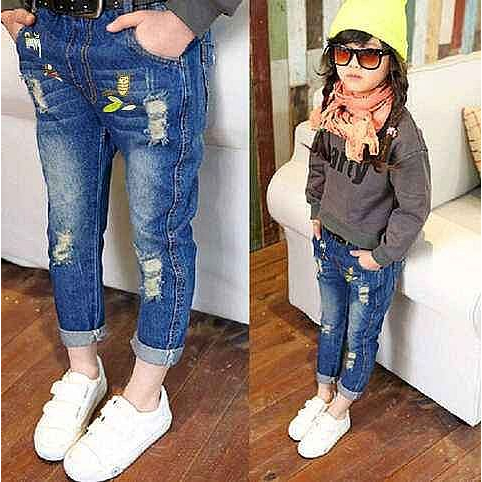 C17306 - CELANA ANAK JEANS GIRL OWL RIPPED