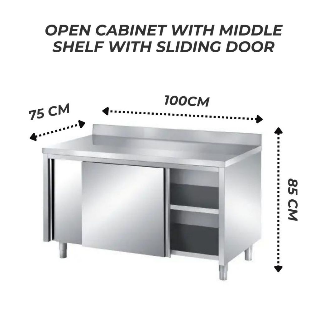 CABINET STAINLESS STEEL W/ MIDLE SHELF W/ SLIDING DOOR 100X75X85