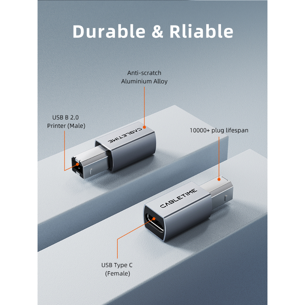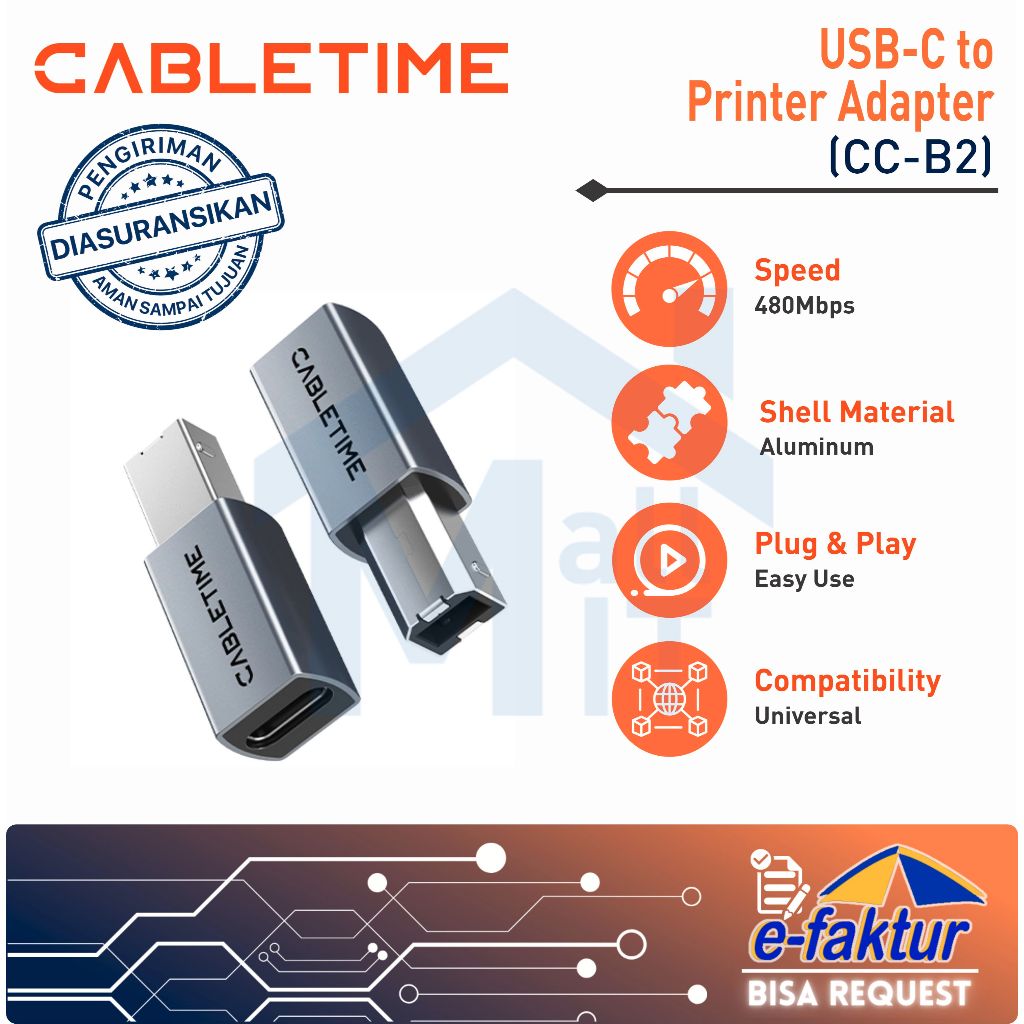 MALLIT CABLETIME Adapter USB Type C To USB-B 2.0 Male Converter 480Mbps Konektor Printer Scanner CCB2