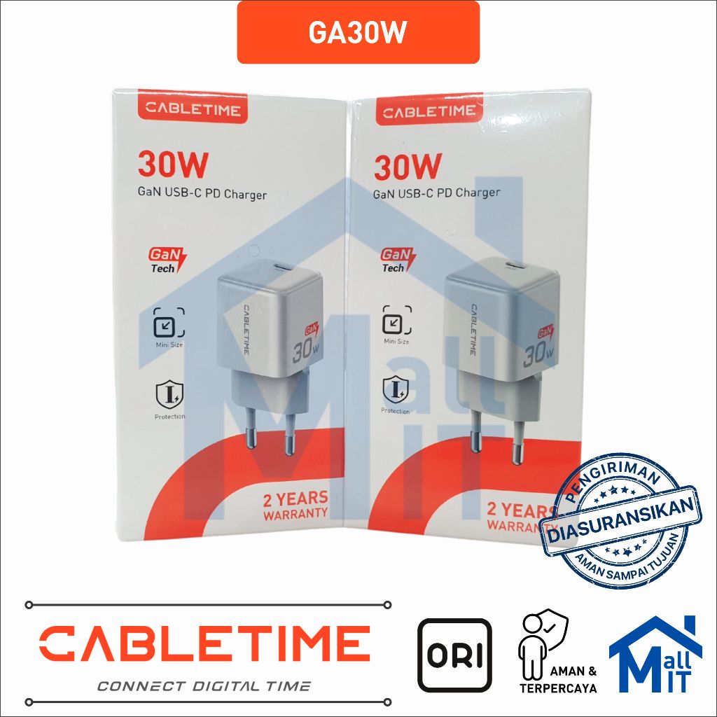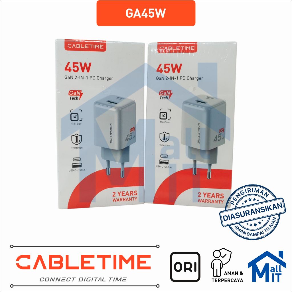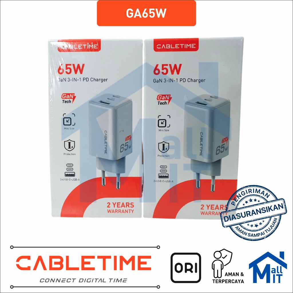 MALLIT CABLETIME Adaptor Kepala Charger GaN PD USB-C Type C Fast Charging 20W 30W 45W 65W GA20B GA30W GA45W GA65W
