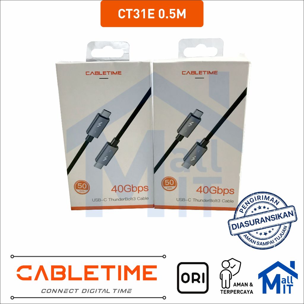MALLIT CABLETIME Kabel Data USB-C to USB C 4K Display Thunderbolt 3 40Gbps 40 Gbps PD 100W Fast Charge Premium Braided Android Apple Samsung Infinix Huawei Xiaomi Redmi CT31