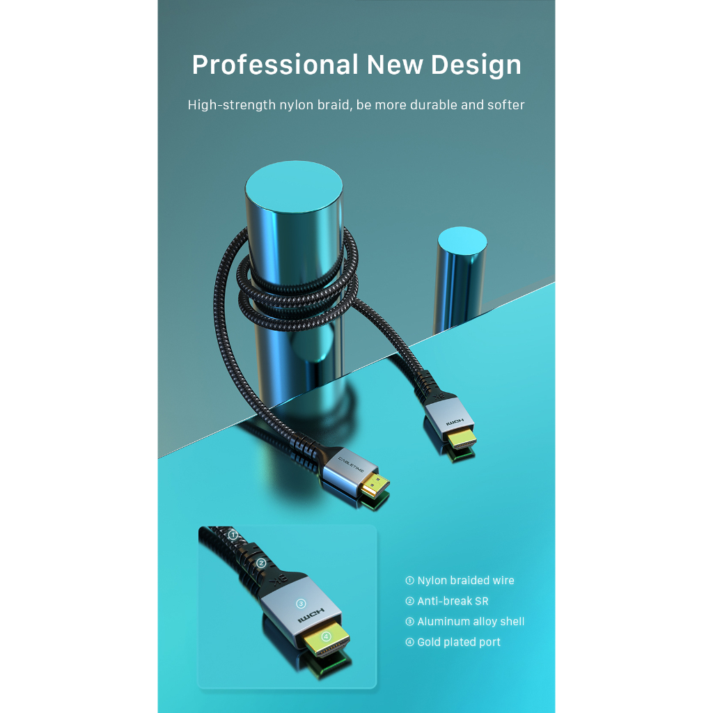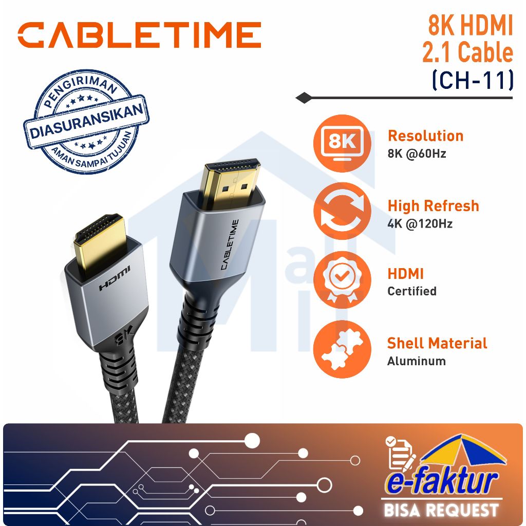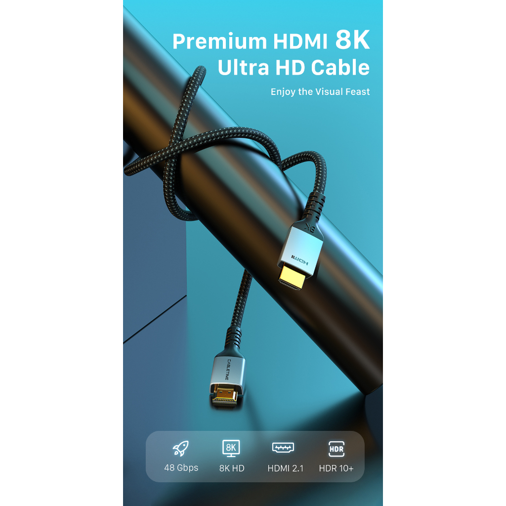 MALLIT CABLETIME Kabel HDMI 2.1 8K @60Hz 4K @120Hz Ultra High Speed HDR eARC Aluminum Premium Braided CH11