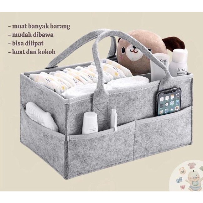CADDY BAG BAYI + TUTUP / FELT DIAPER CADDY BAG / TAS BAYI BABY PENUTUP Caddy Bag Baby Tas Bayi Multifungsi Portable / Tas Diaper Bayi