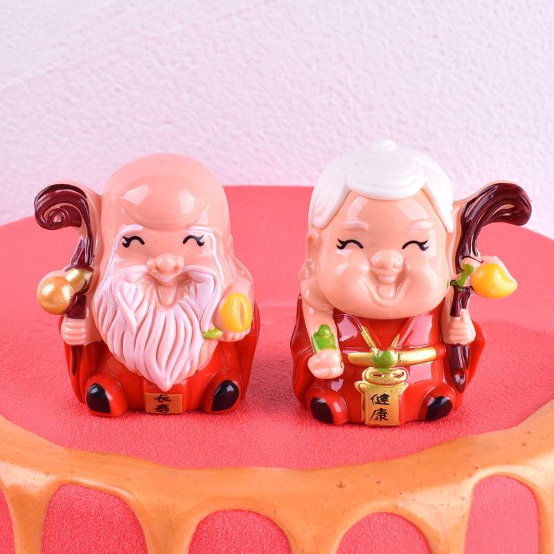 CAKE TOPPER GRANDPA GRANDMA IKAN TULISAN MANDARIN CHINESE/TOPPER KUE KAKEK NENEK
