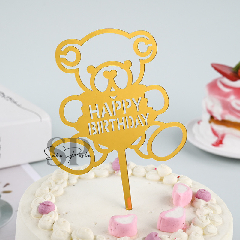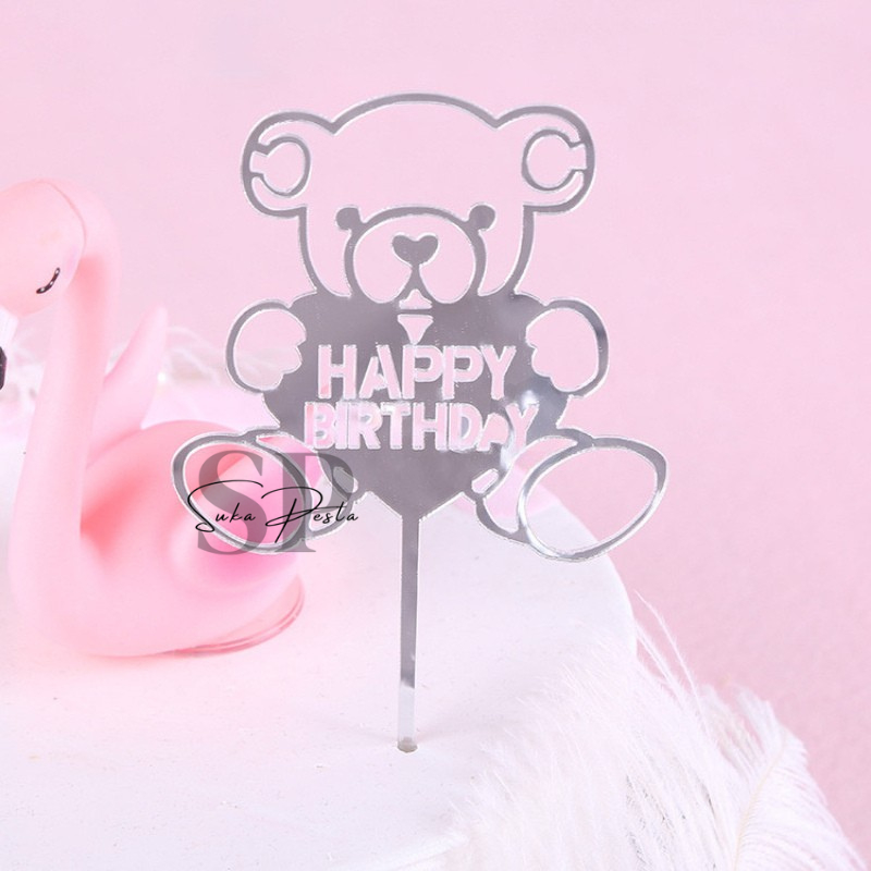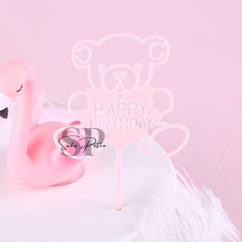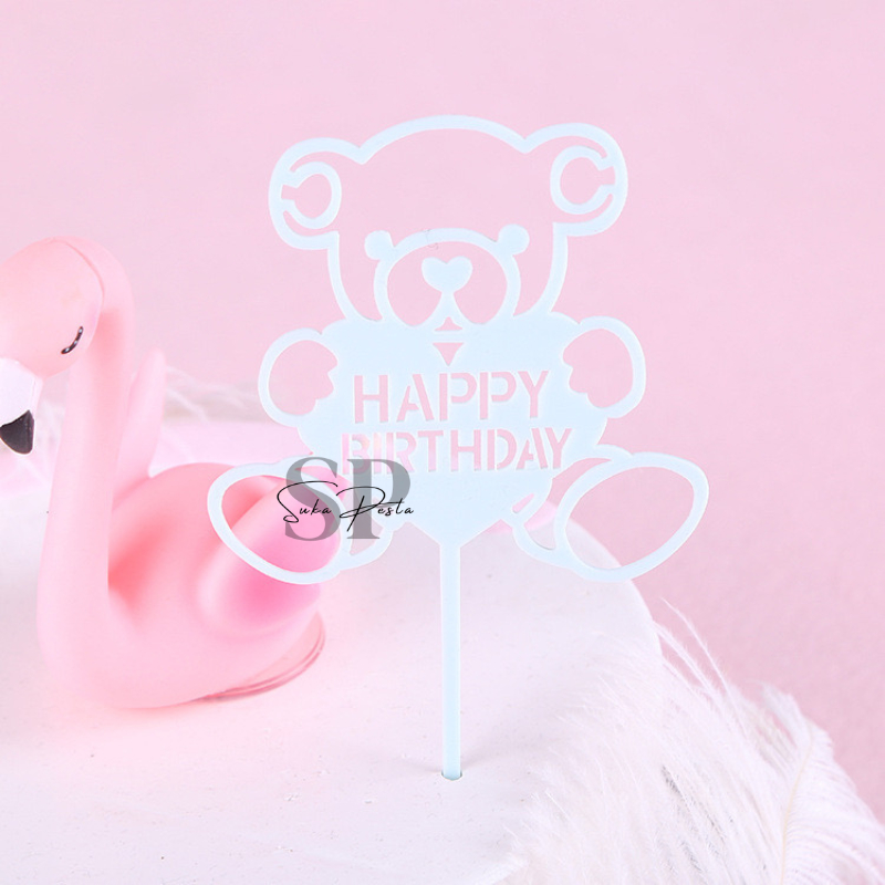 CAKE TOPPER HAPPY BIRTHDAY AKRILIK MOTIF BERUANG 10 / HIASAN KUE HBD AKRILIK MOTIF BERUANG / CAKE TOPPER HBD AKRILIK / HIASAN KUE AKRILIK / CAKE TOPPER AKRILIK / CAKE TOPPER BEAR / HIASAN KUE BERUANG