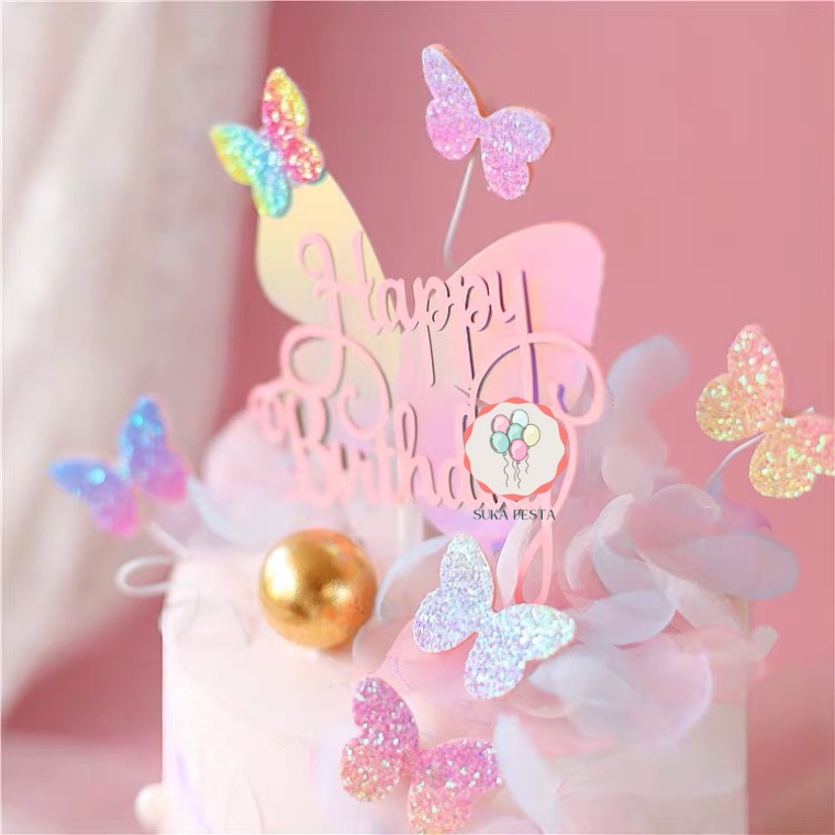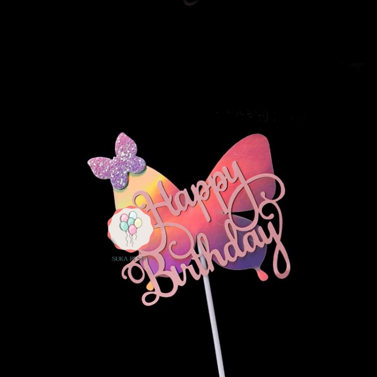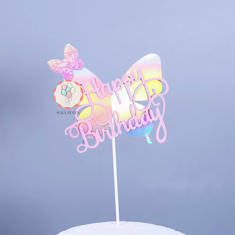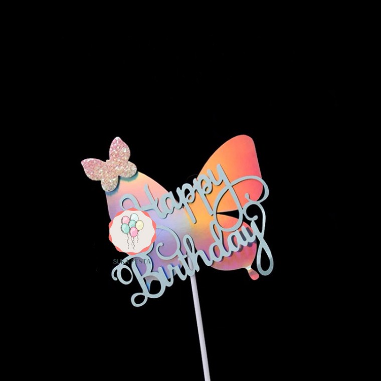 CAKE TOPPER HBD HOLOGRAM KUPU-KUPU / TUSUKAN HIASAN KUE ULTAH